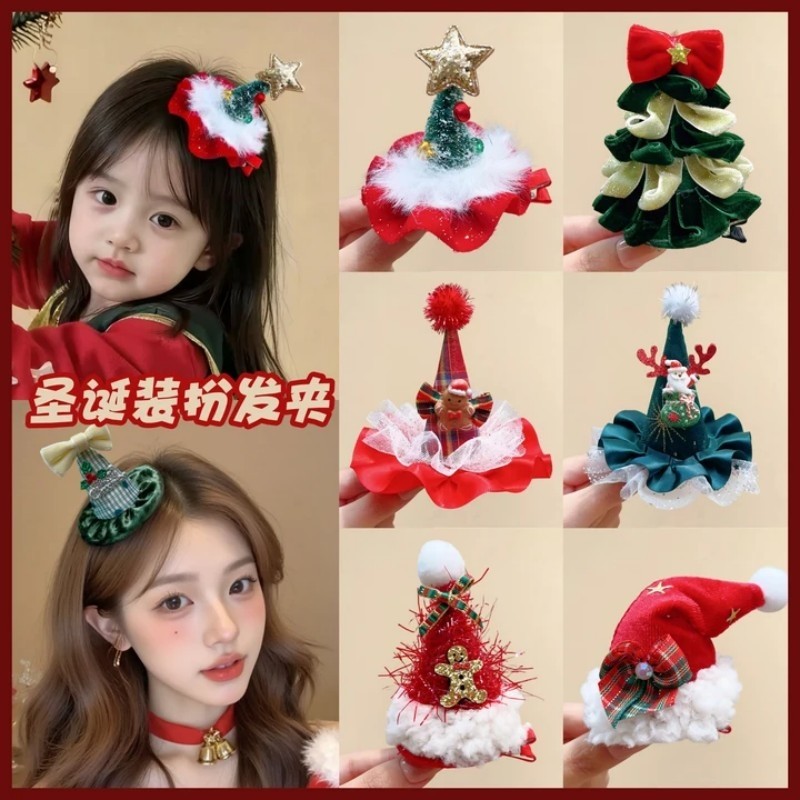 圣诞节头饰宝宝圣诞帽子女童发饰蝴蝶结装饰品圣诞帽发夹cos生日