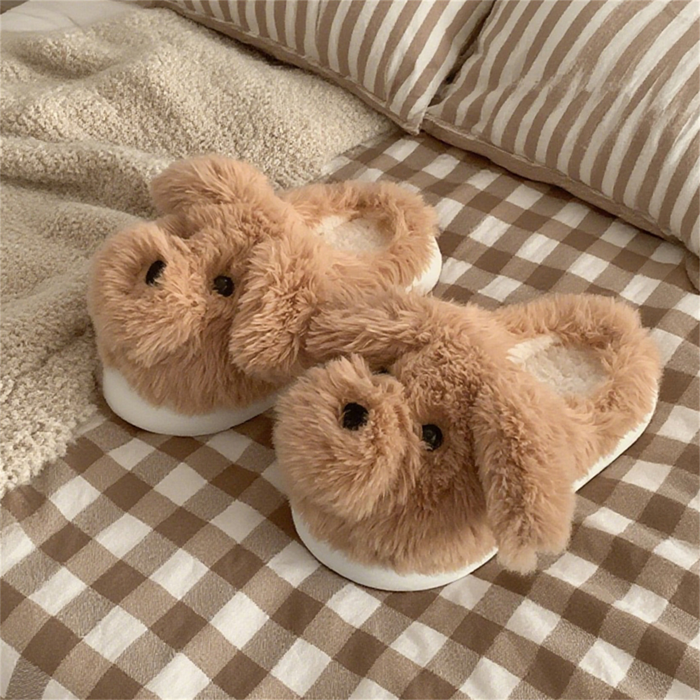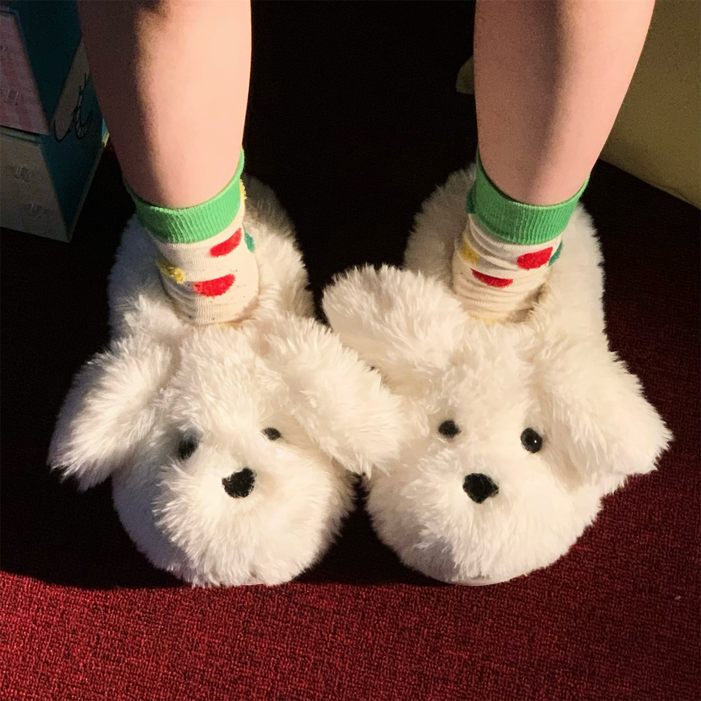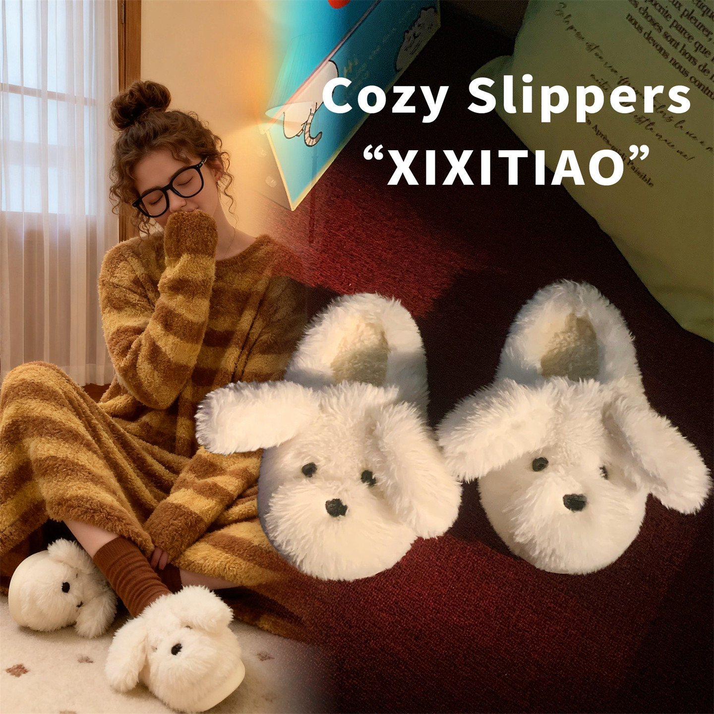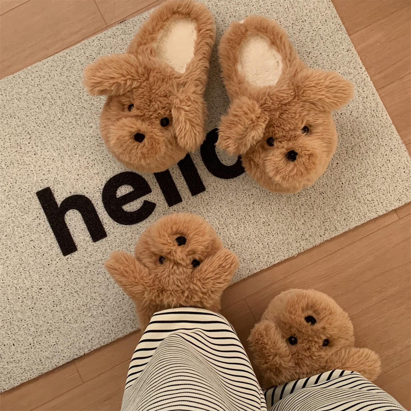 细细条 包跟可爱狗狗棉拖鞋男女冬少女心情侣防滑保暖居家毛毛鞋