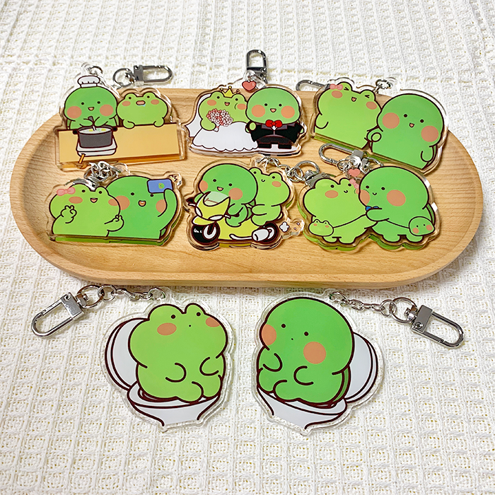 蛙蛙龟龟卡通表情挂件情侣礼物钥匙挂饰双面亚克力钥匙扣挂扣