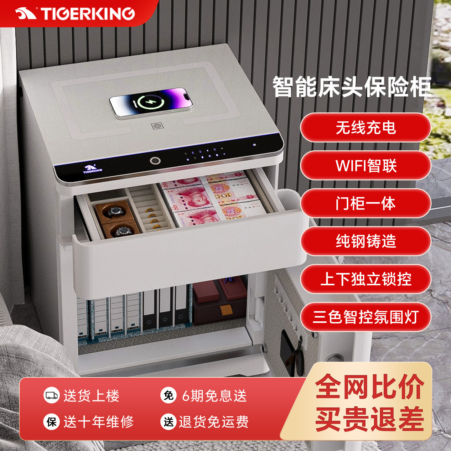 tigerking虎王牌保险柜2025新款家用小型全钢床头柜保险箱柜一体指纹锁wifi远程轻奢卧室智能办公夜灯多功能