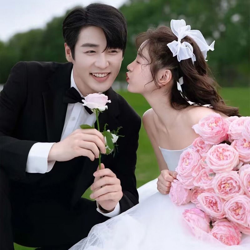 湿感奥斯汀玫瑰花仿真影楼婚纱摄影道具新娘手捧花粉色大束玫瑰花