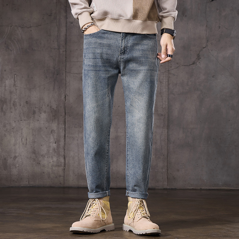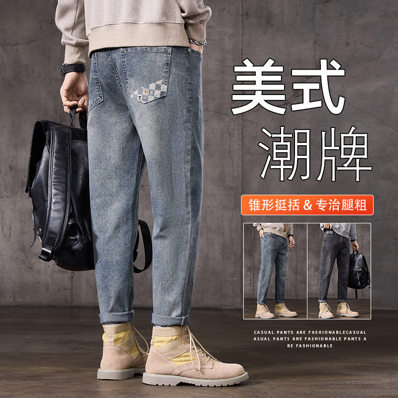森柔牛仔森马牛仔裤男小脚裤复古水洗长裤夏季裤子直筒显高显腿长