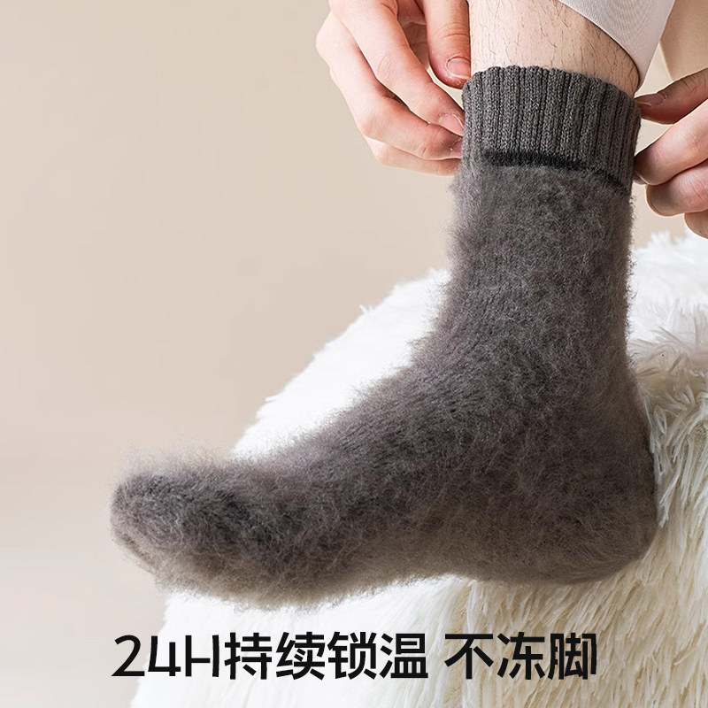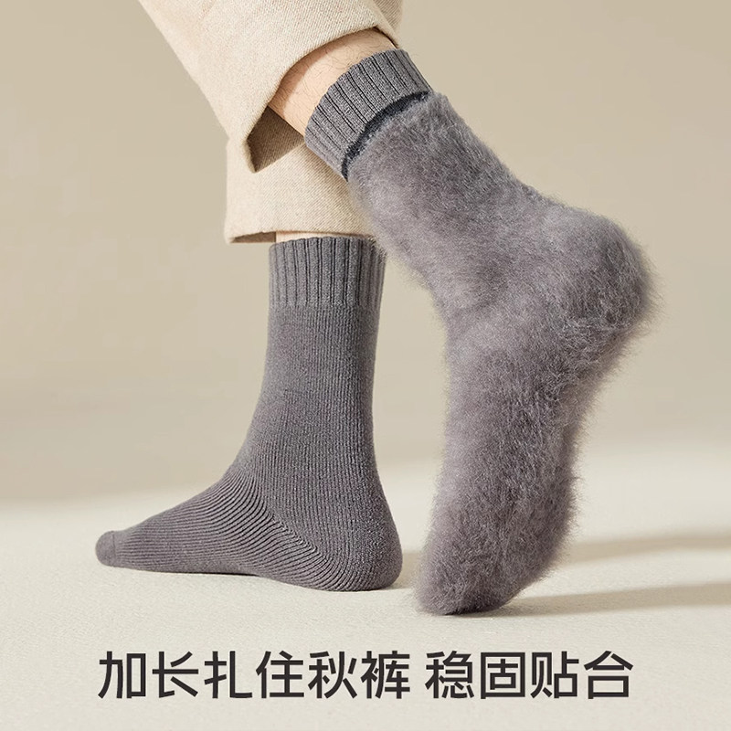 加绒袜子男秋冬款保暖仿羊绒中筒袜加厚居家地板睡眠袜仿羊毛长袜