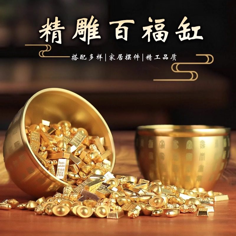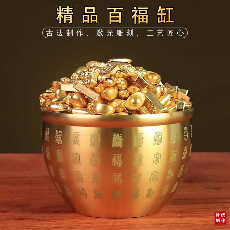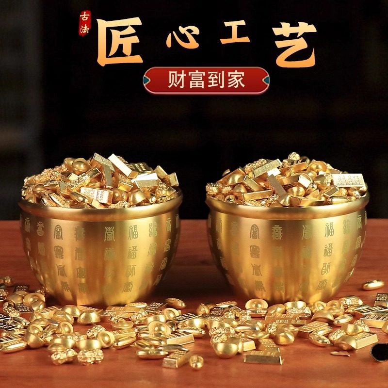 黄铜实心沙金元宝摆件道具财神客厅聚宝盆店铺装饰品开业乔迁礼品