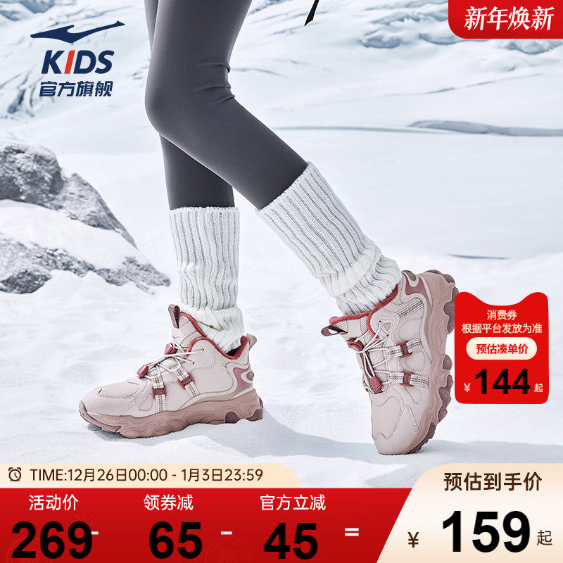 阡陌|鸿星尔克童鞋女童棉鞋冬季新保暖运动鞋子防泼水加绒雪地靴