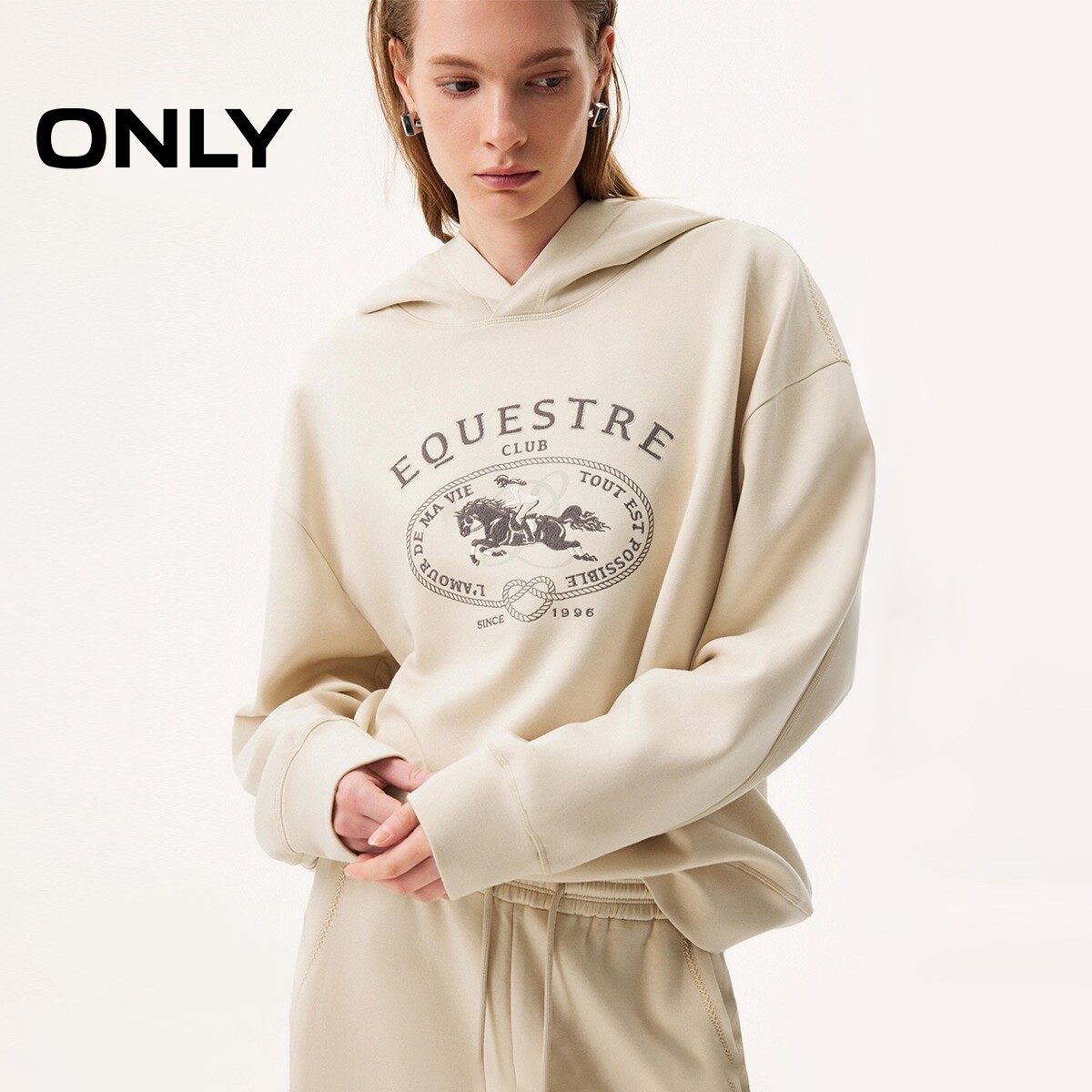 ONLY2026春季新款「马年限定」字母图案oversize运动风连帽卫衣女