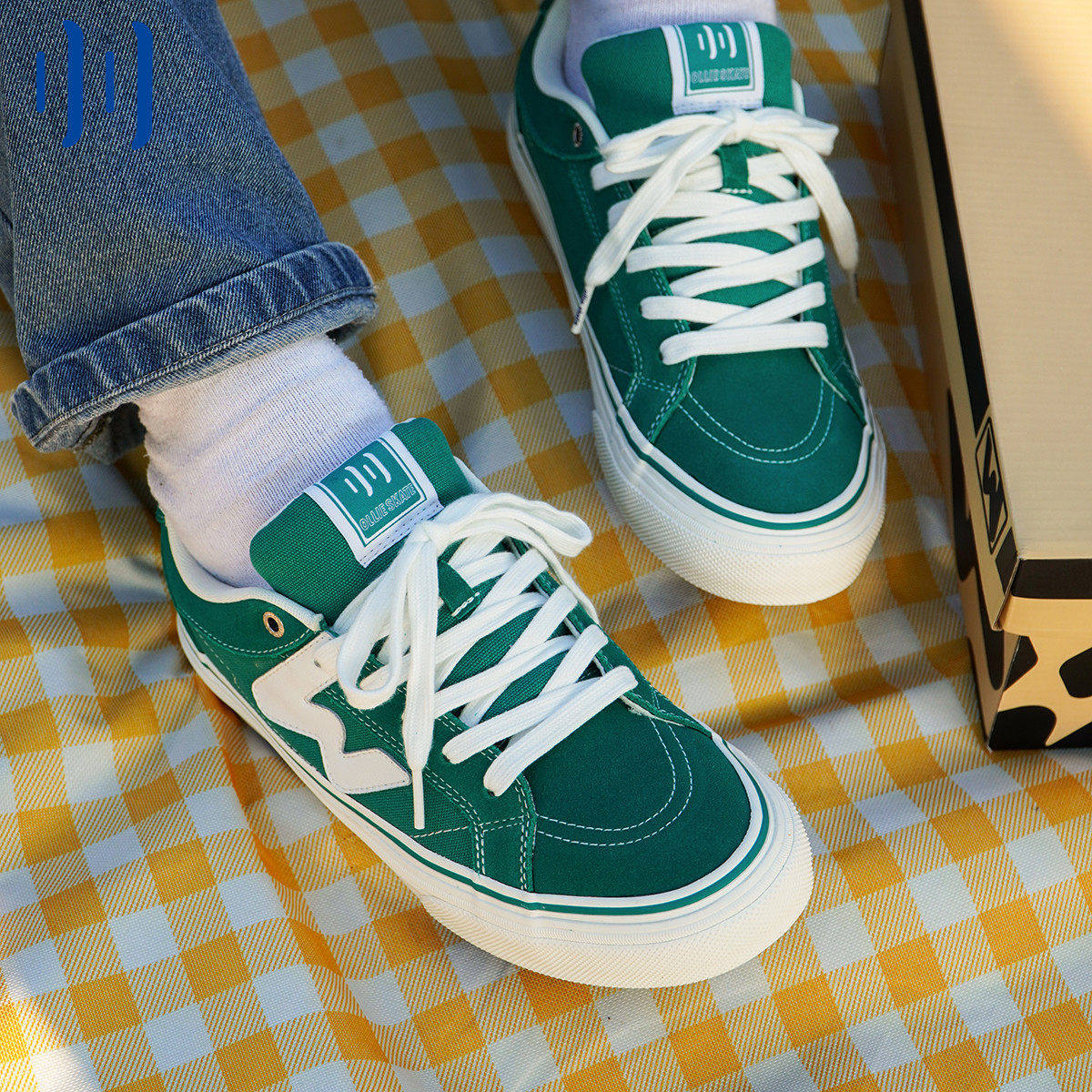 顽刻官方草绿色春季校园风W系列翻毛皮帆布拼接男女国潮滑板鞋