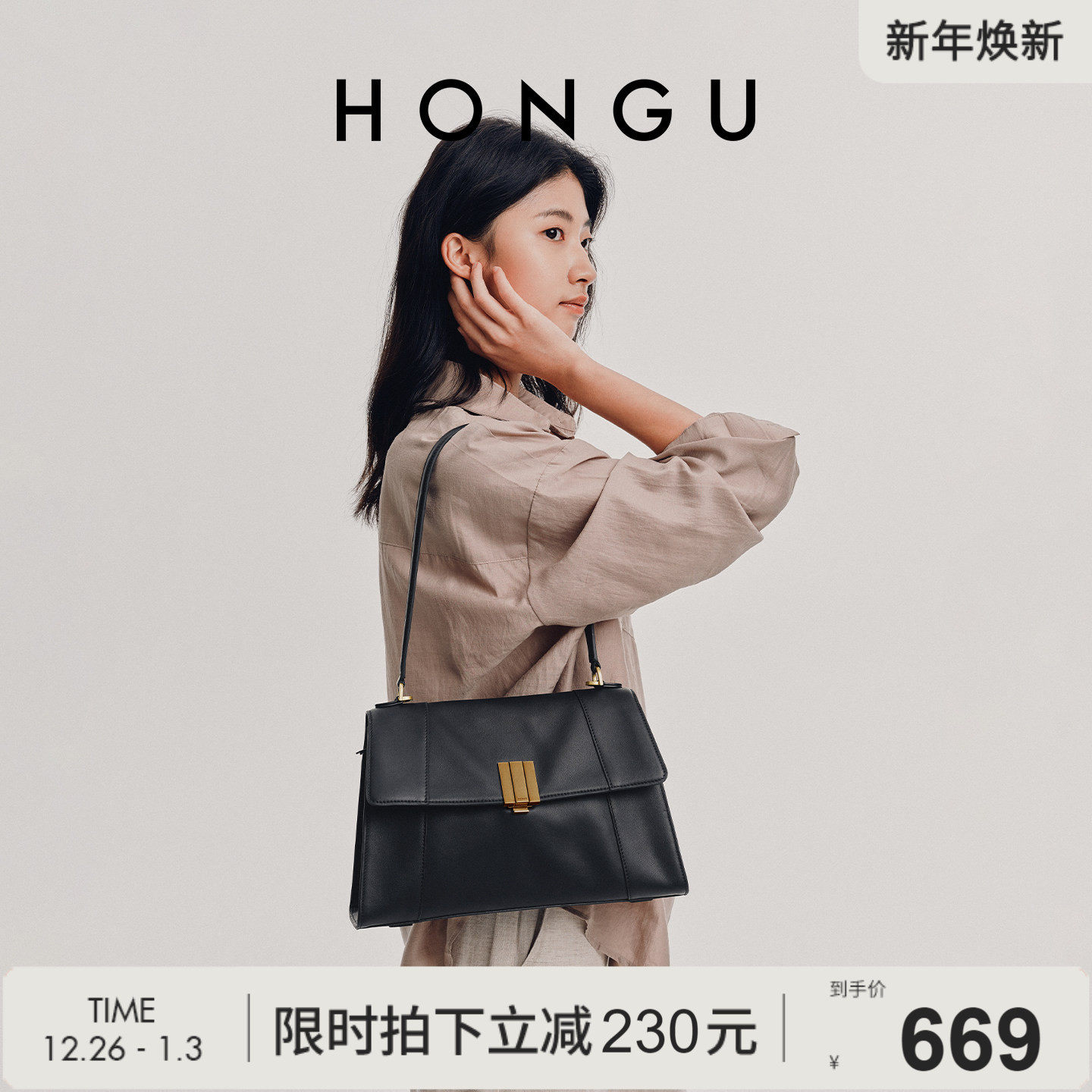 红谷包包2025新款真皮单肩腋下包时尚通勤大容量斜挎手提包女士包