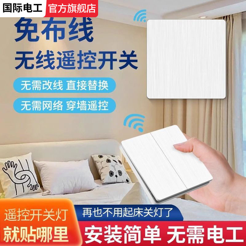 无线遥控开关控制器220v双控免布线86面板家用随意贴远程关灯神器