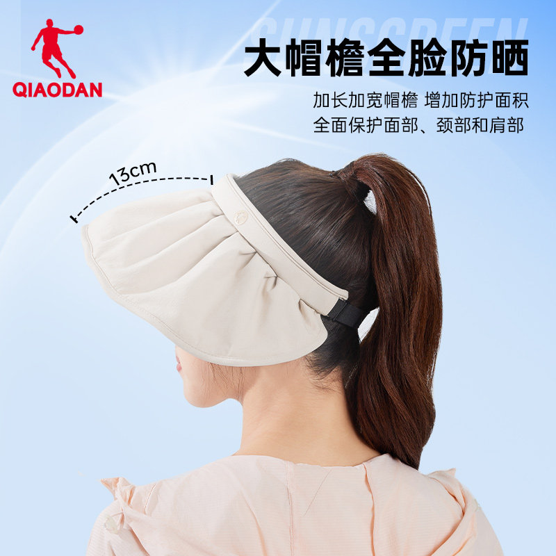 乔丹防晒帽子女2025夏款透气防紫外线遮阳遮脸空顶太阳帽贝壳帽女