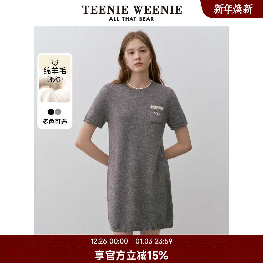 TeenieWeenie小熊奥莱连衣裙冬季休闲圆领短袖针织裙女