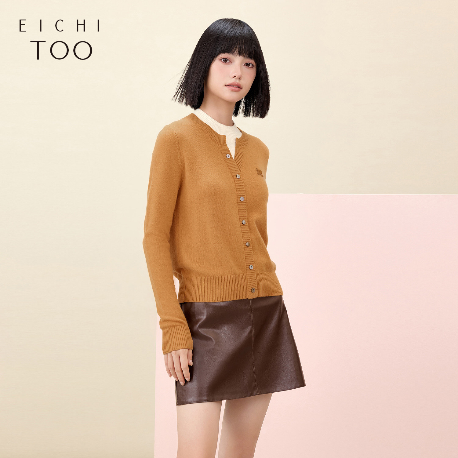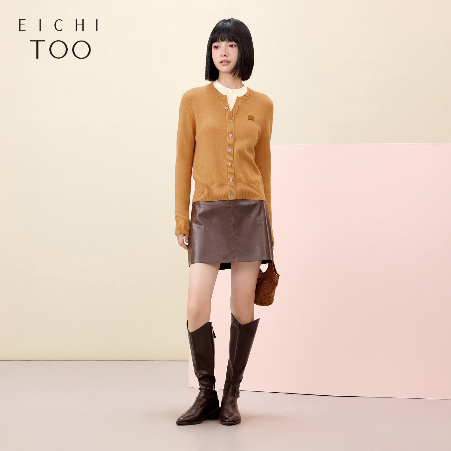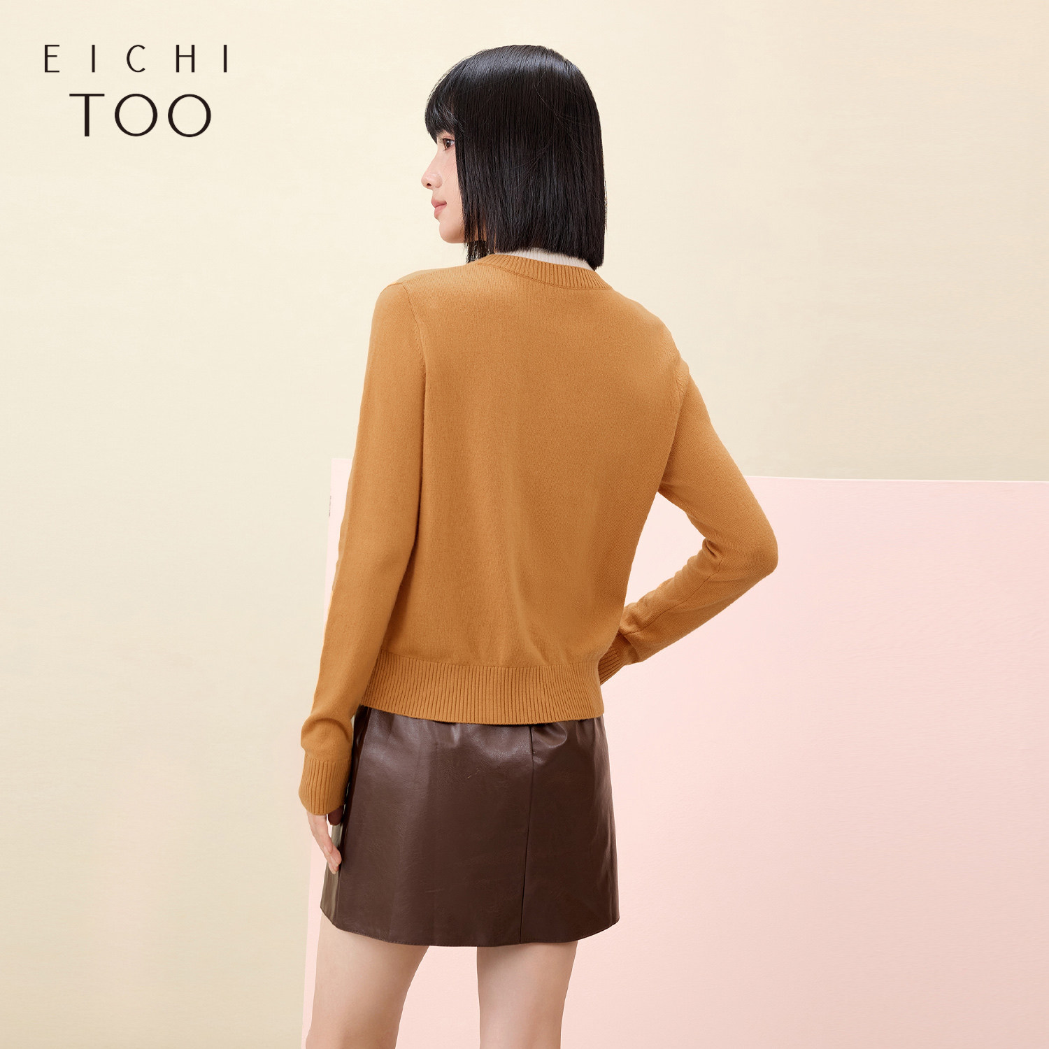 爱居兔假两件打底衫女冬季新款优雅简约长袖针织衫