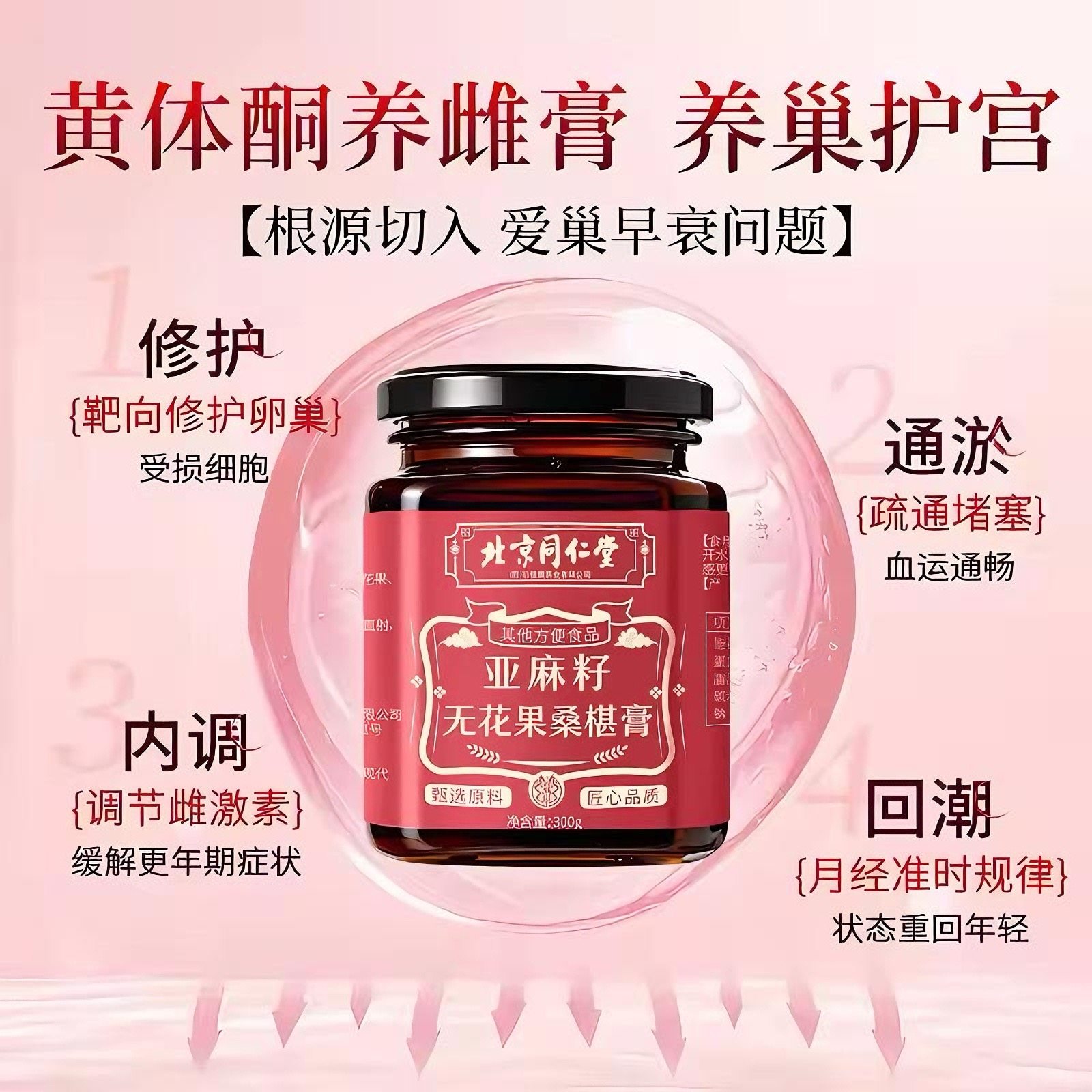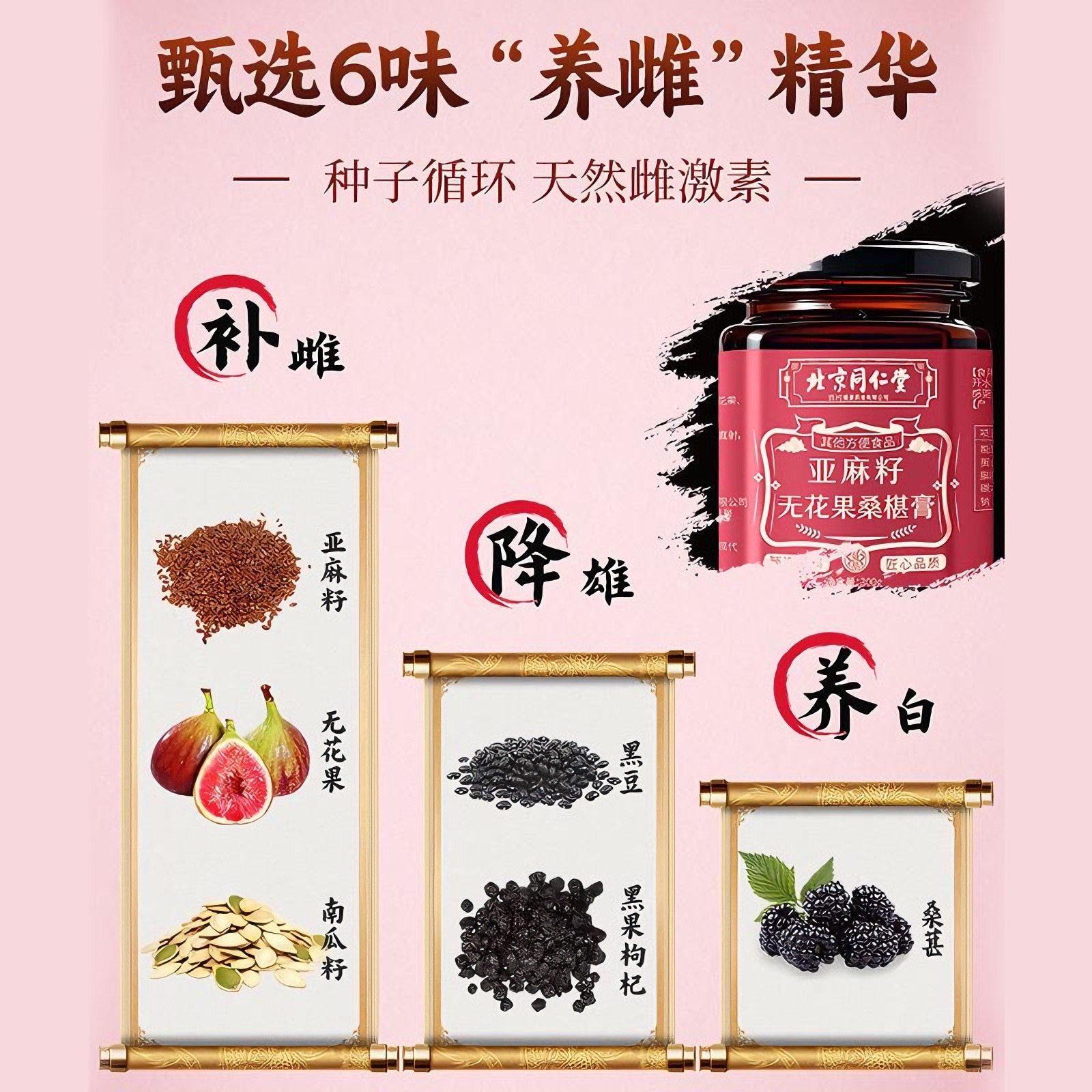 北京同仁堂养雌膏黄体酮茶亚麻籽无花果黑豆黑枸杞桑葚种子循环包