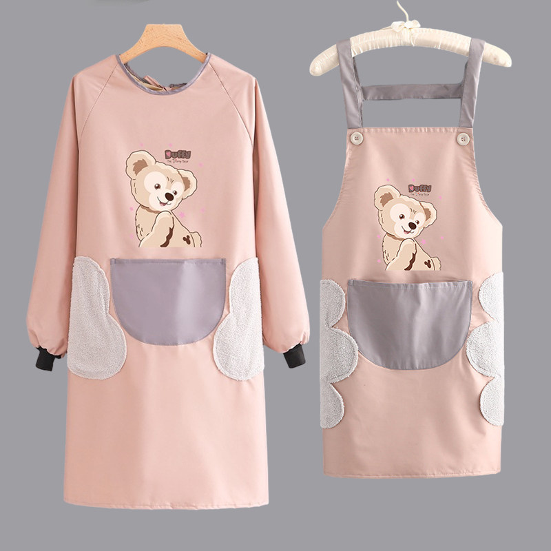 冬季加绒罩衣大人加厚长袖围裙防水韩版女时尚外套家用工作服定制