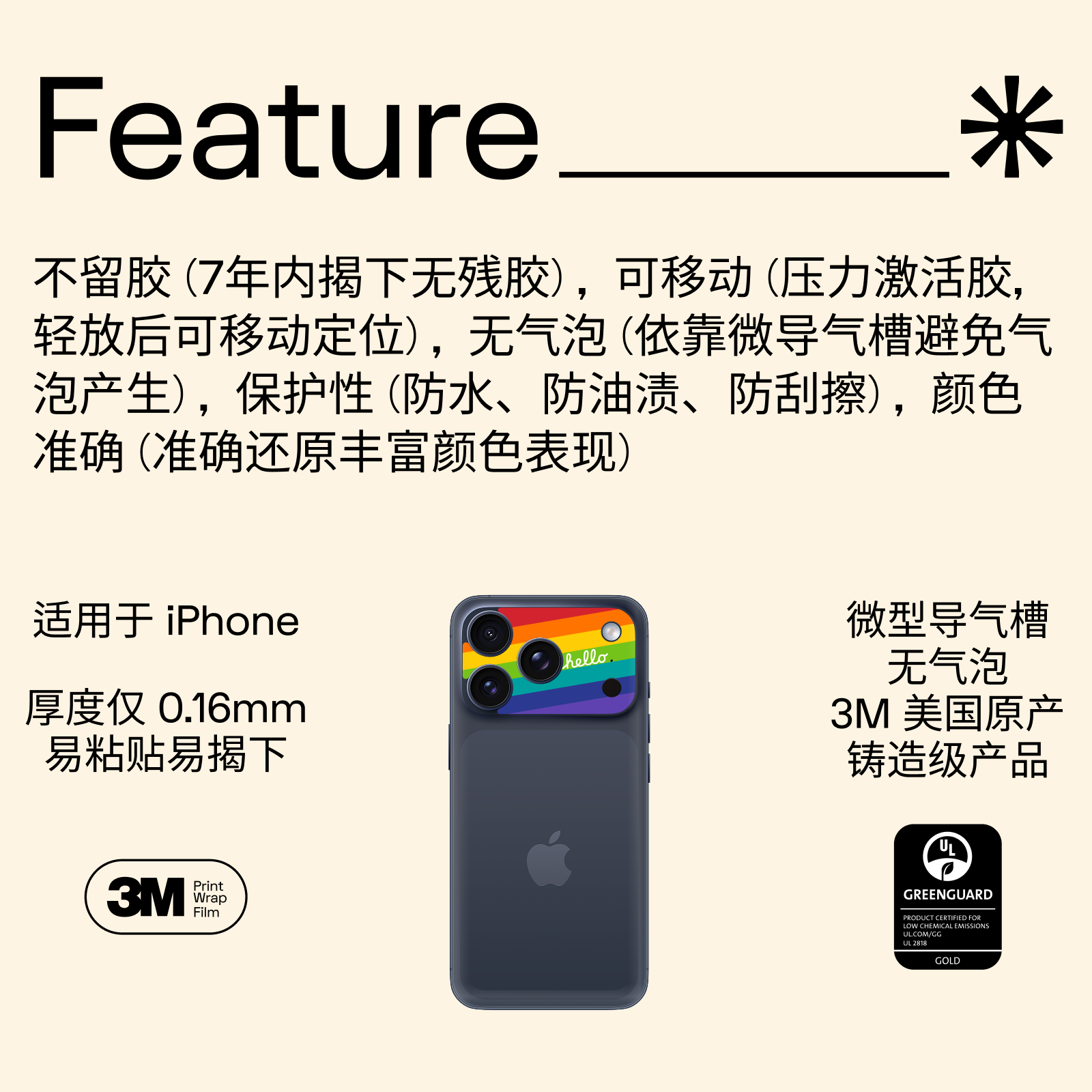 SkinAT适用iPhone 17 Pro Max ins 风镜头膜 彩虹条纹款 17 Pro 摄像头保护贴 hello 潮风防刮遮瑕贴膜 3M