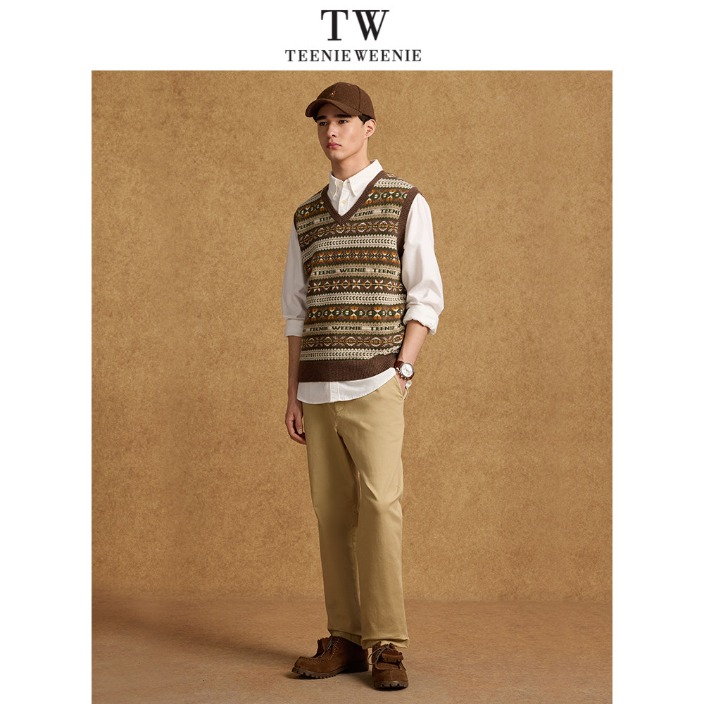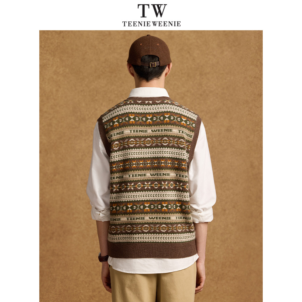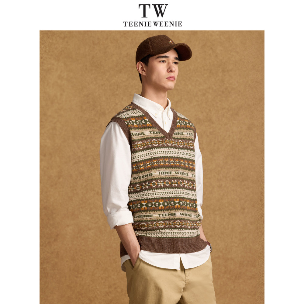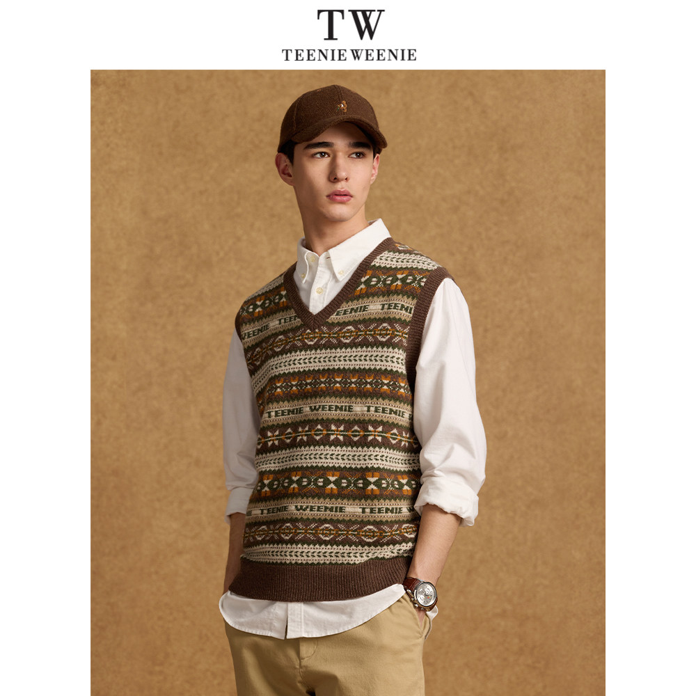 TeenieWeenie小熊男装时尚简约条纹毛衣秋V领提花潮流复古背心男