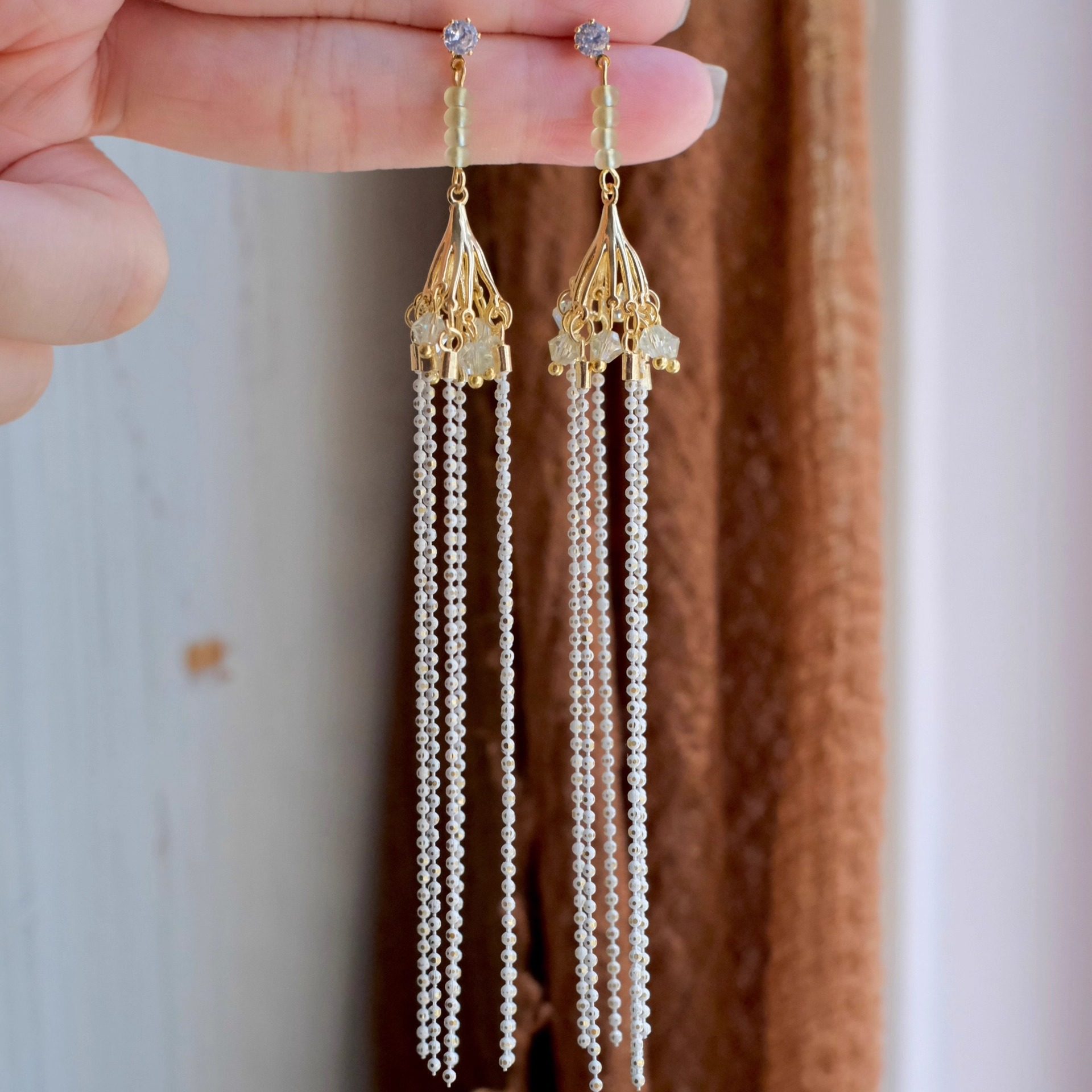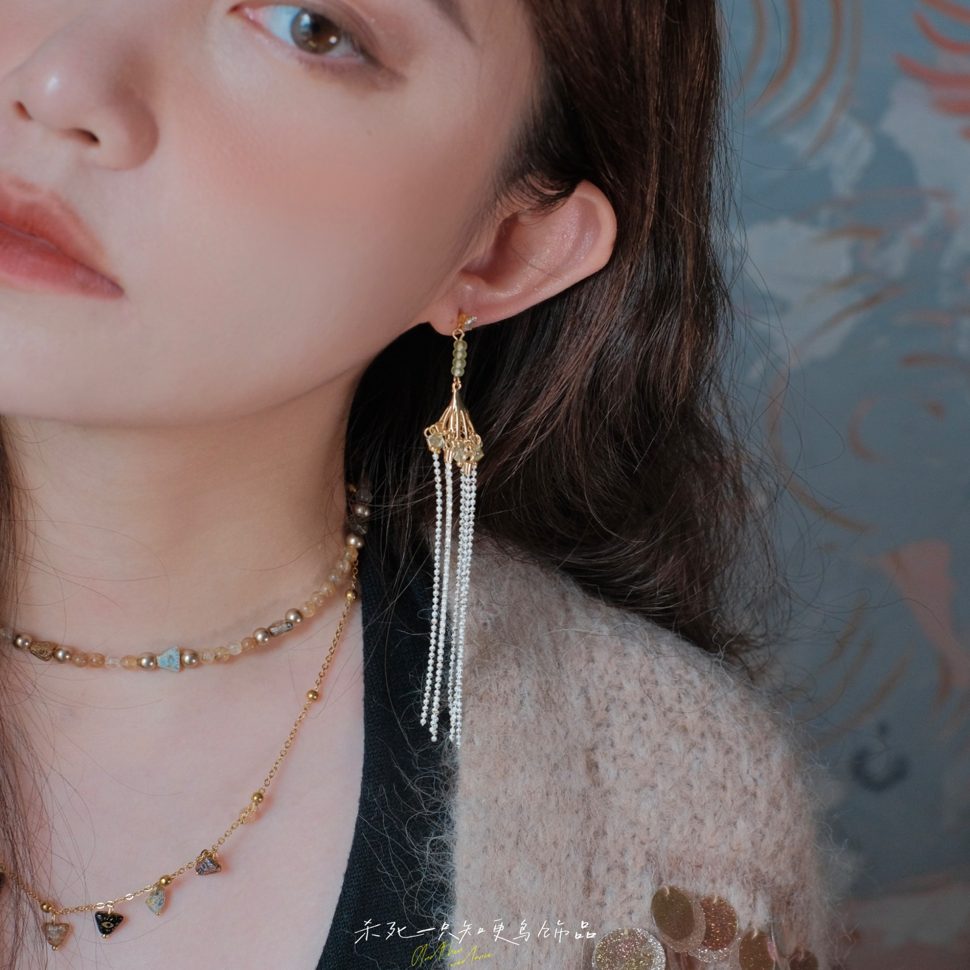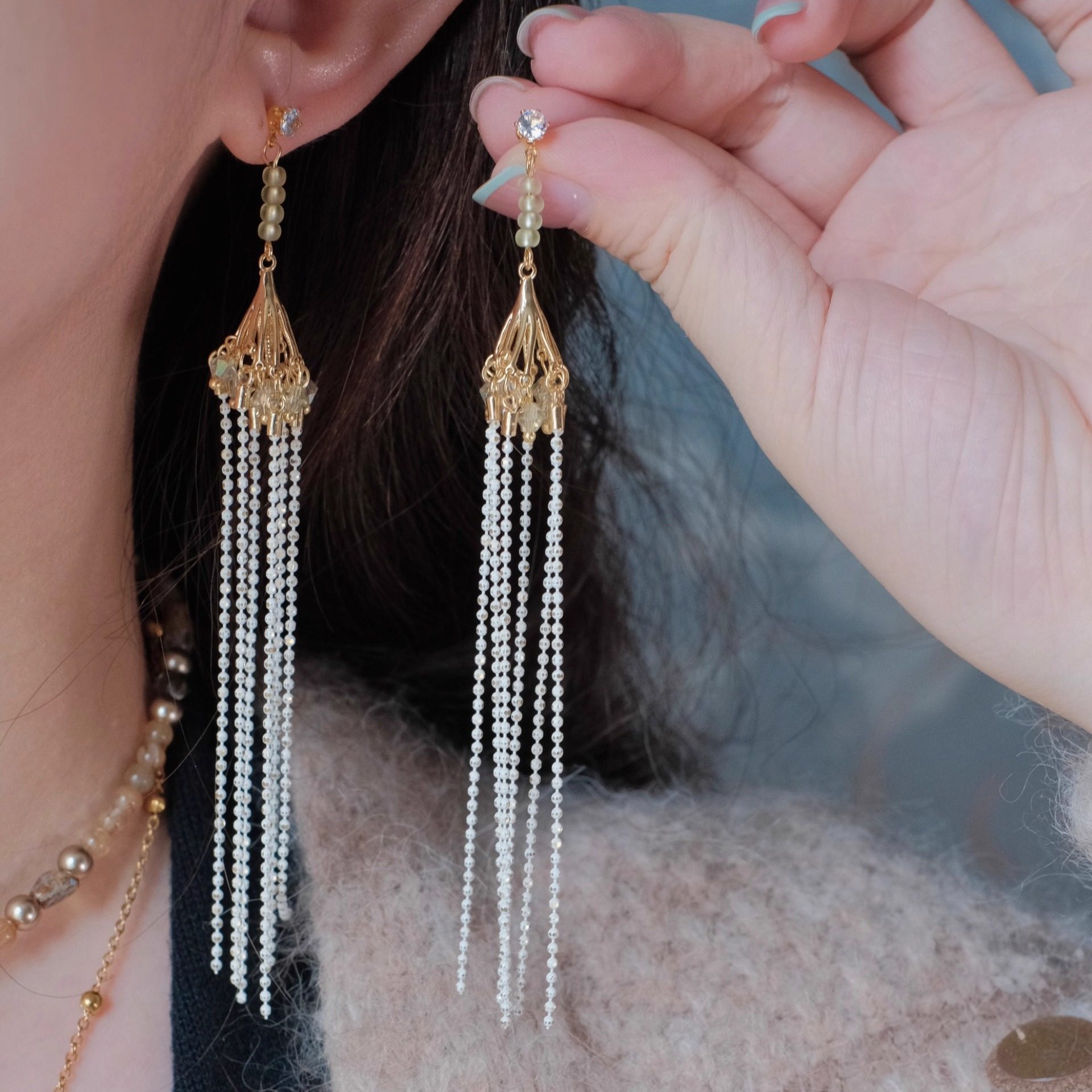 《映雪琼枝》原创独特国风古典清冷感白色长款流苏耳环耳饰耳夹女