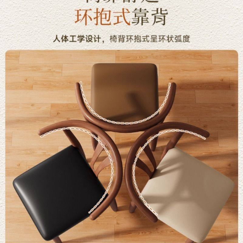 轻奢侘寂风餐椅皮软包设计师现代弯曲木咖啡厅实木椅子家用书房椅