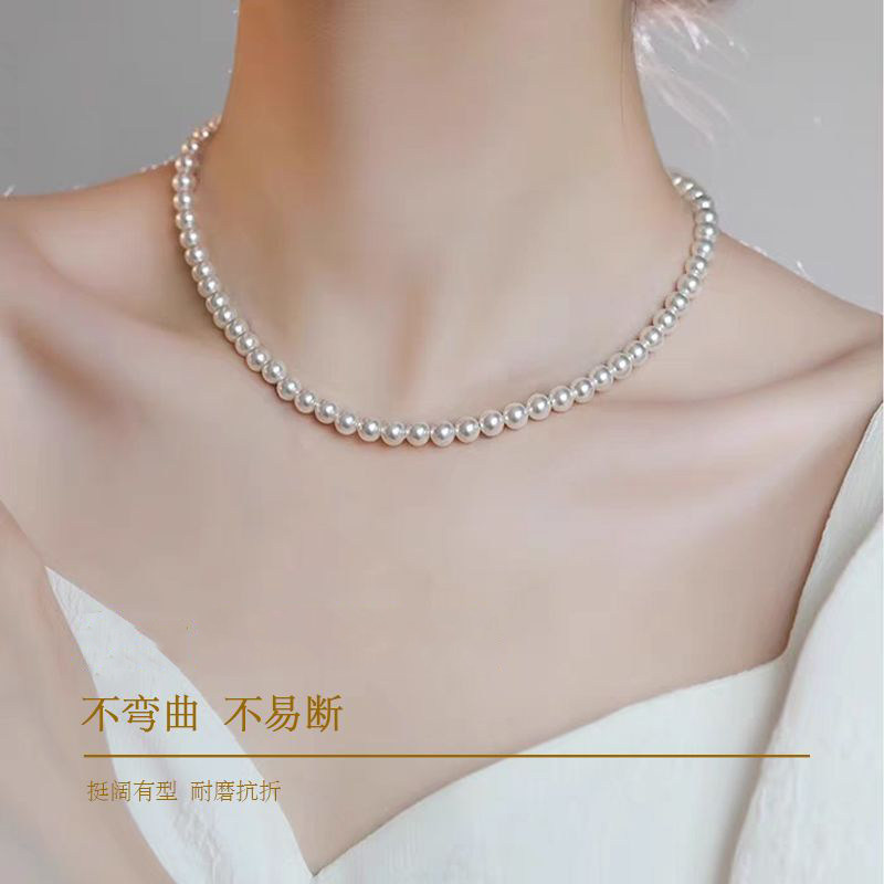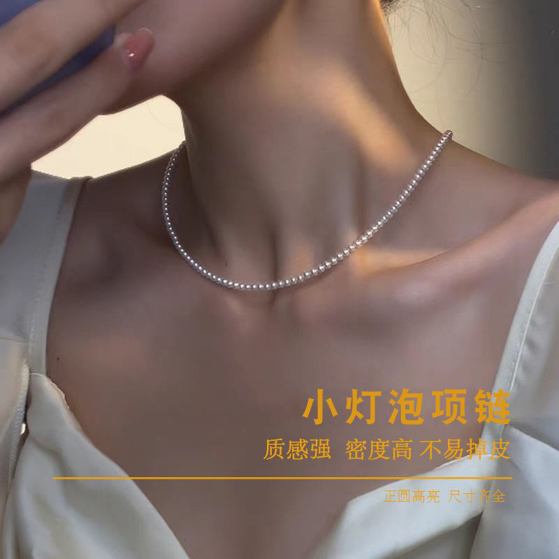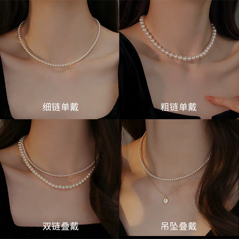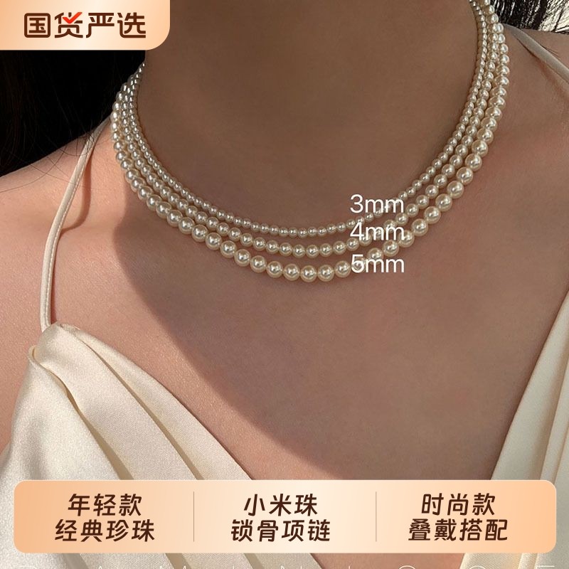 正圆强光小米珠珍珠项链女款人造珍珠锁骨链双层叠戴时尚简约颈链