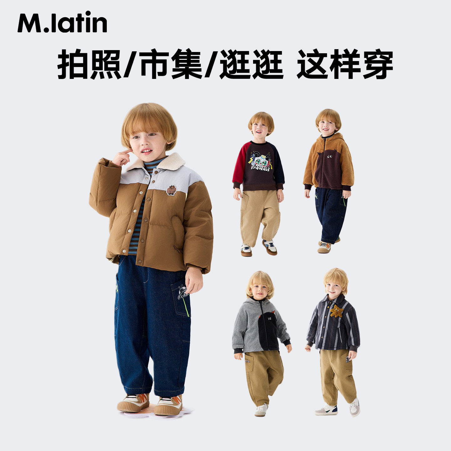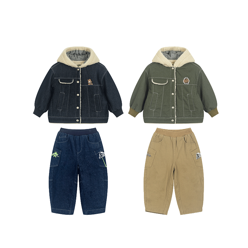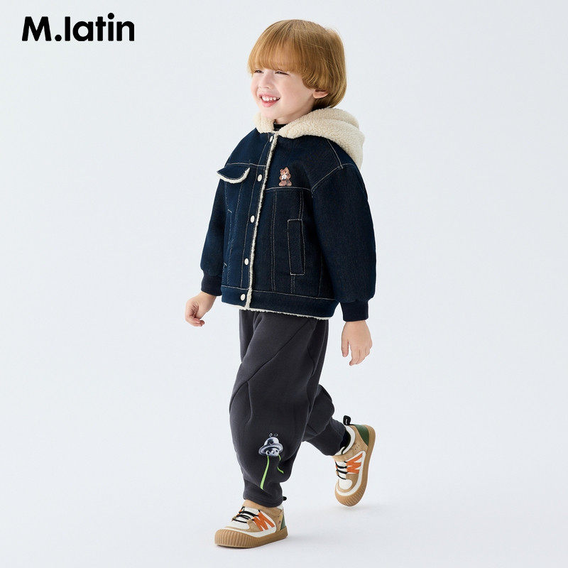 马拉丁童装儿童外套男女童牛仔外套设计感保暖百搭连帽棉衣