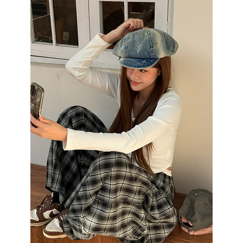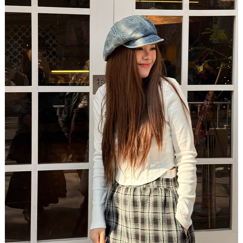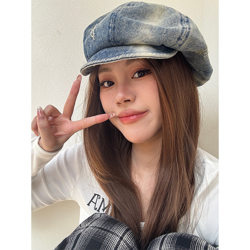 妖精的口袋复古牛仔贝雷帽女2026新款大头围显脸小百搭文艺画家帽
