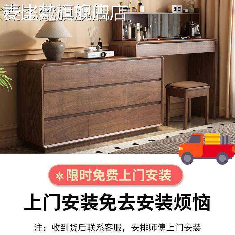 麦比梵中古风全实木梳妆台斗柜一体伸缩现代简约卧室2025新款化妆桌妆台床笠拉车