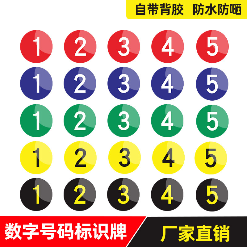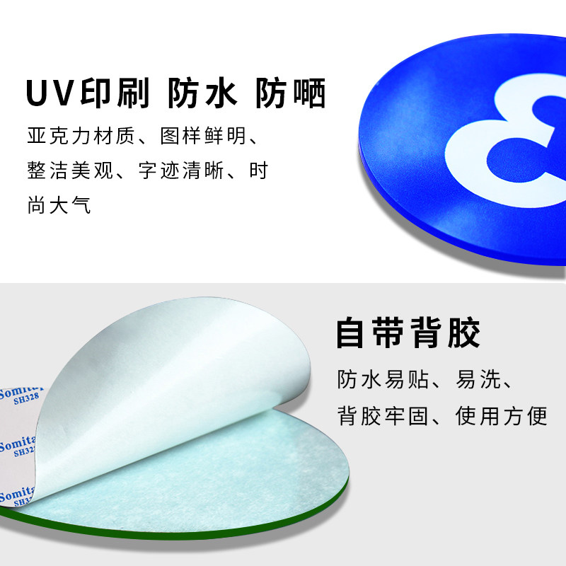 亚克力号码贴餐桌柜子机器设备编号数字标牌餐厅网吧更衣柜数字编号牌塑料防水自粘贴定制圆形麻辣烫餐牌号