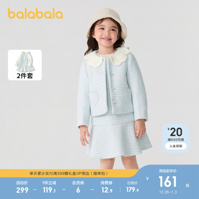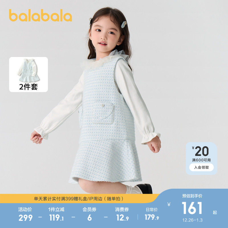 巴拉巴拉女童裙套装千鸟格小香风两件套秋冬装背心裙洋气时尚公主