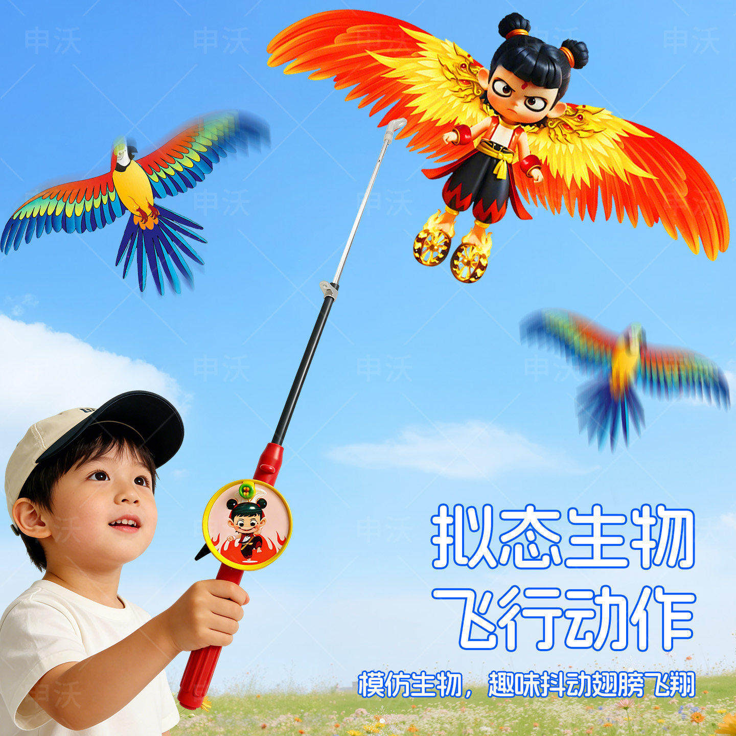 风筝儿童微风易飞2026新款手持鱼竿动态小号燕子纸鸢老鹰金鱼大全