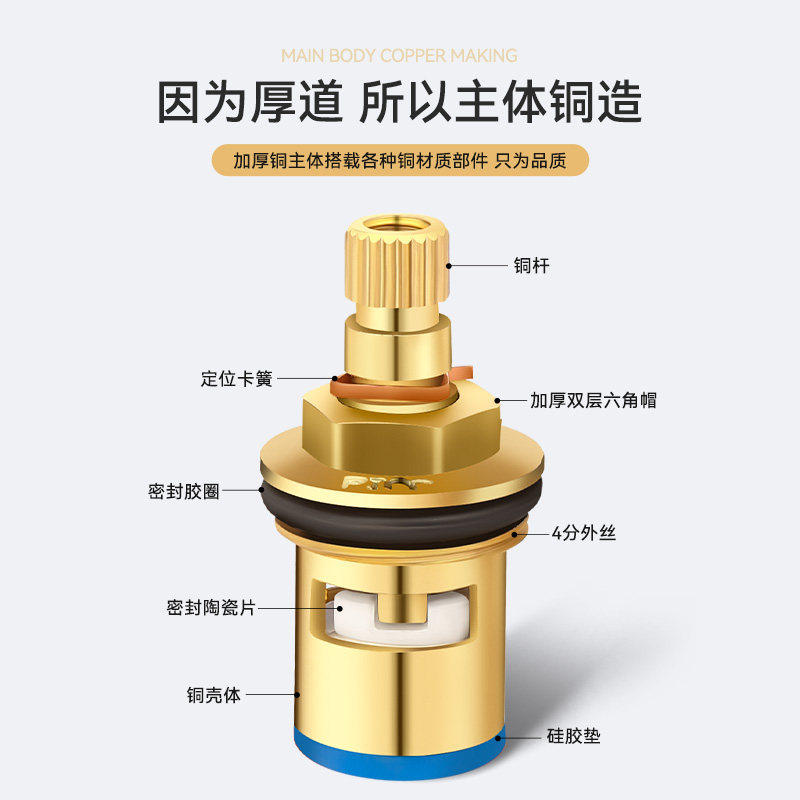 水龙头阀芯阀门全铜单冷热厨房龙头开关把手柄配件陶瓷快开胶垫