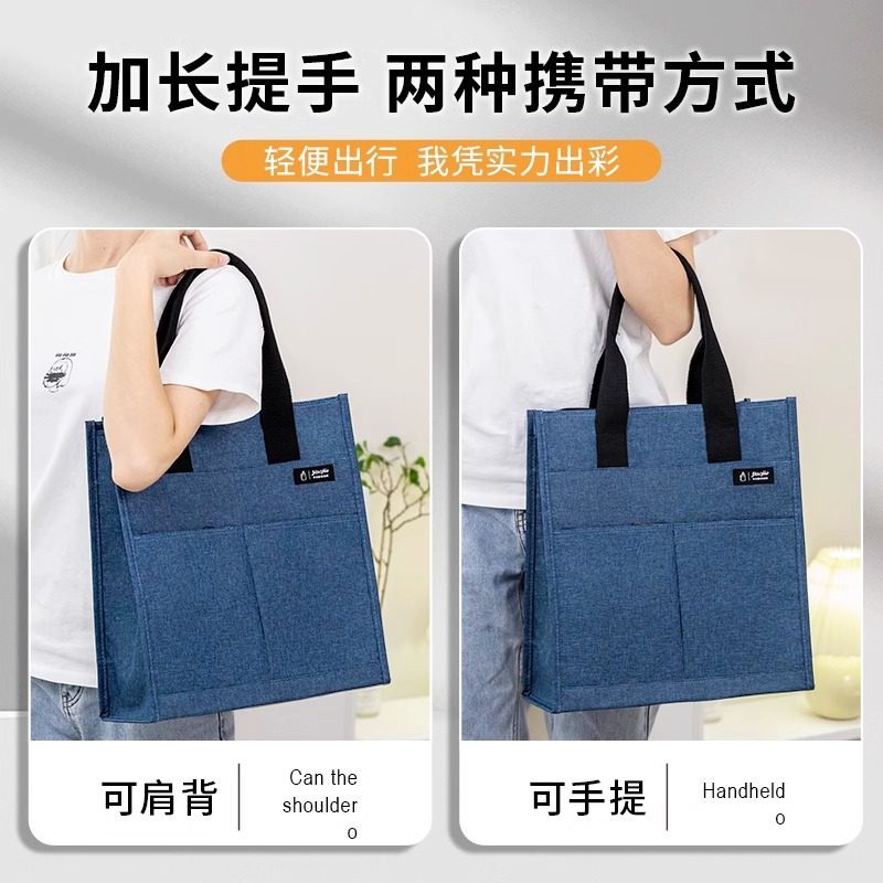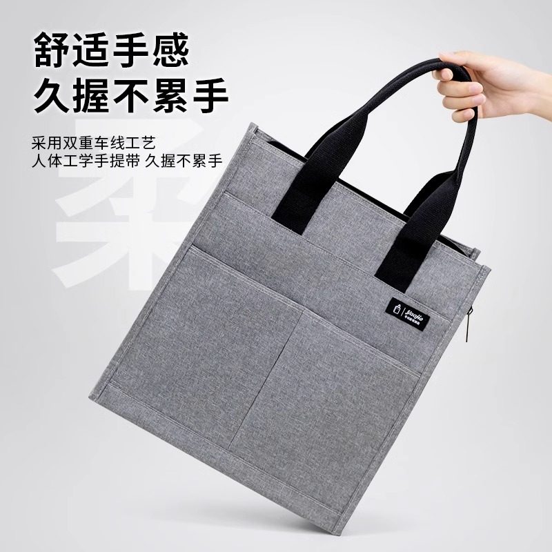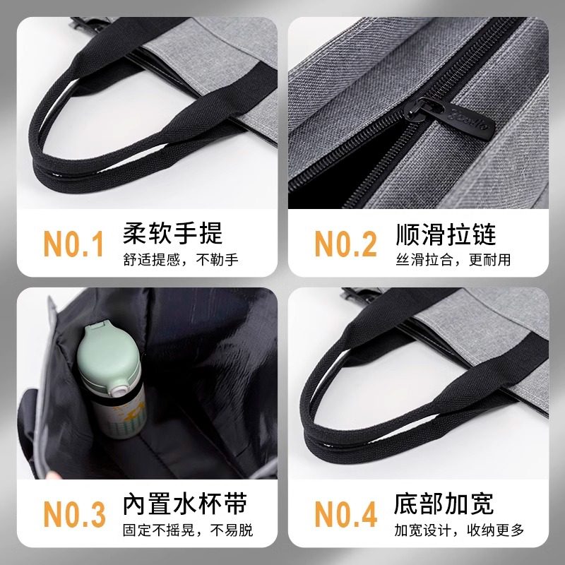 重要会议公文包可定制logo竖款带水杯位商务电脑包大容量帆布拉链文件收纳袋学生补习袋档案包通勤出差手提袋
