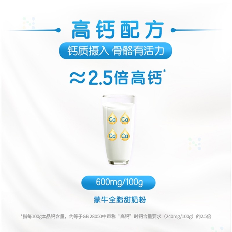 蒙牛全脂甜奶粉400g高钙高蛋白营养调制乳粉全家早餐冲饮