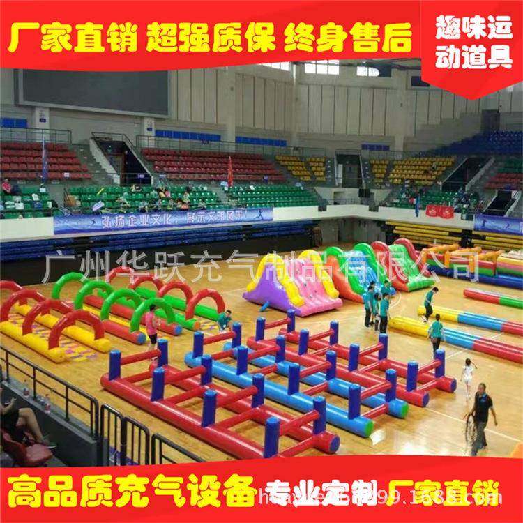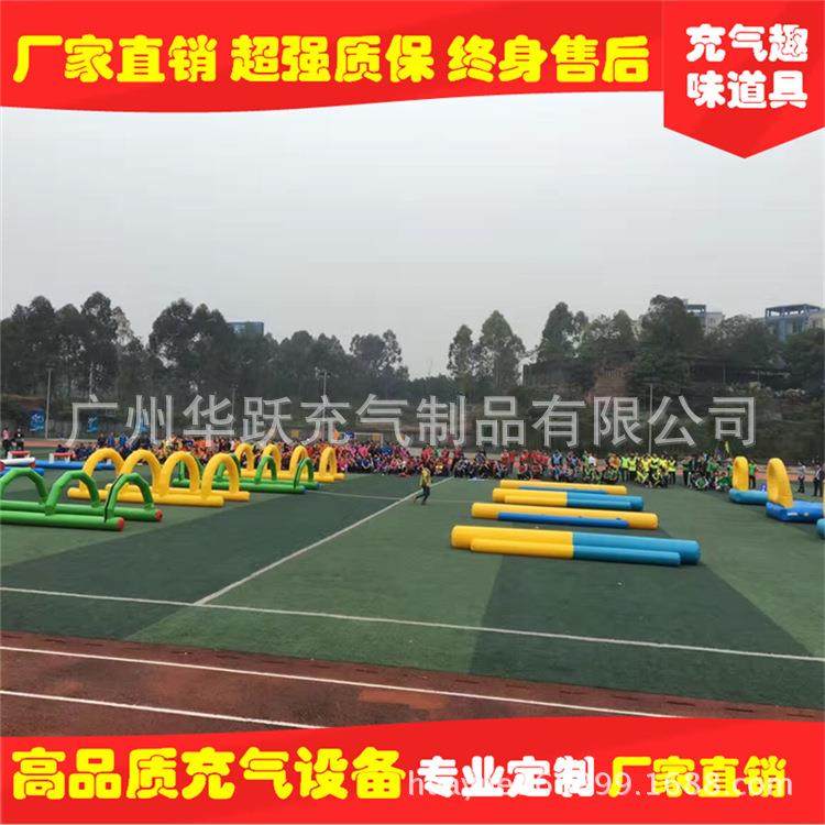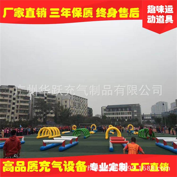 趣味运动会道具四件套充气跨栏鱼跃龙门平衡木 时光隧道 钻网通道