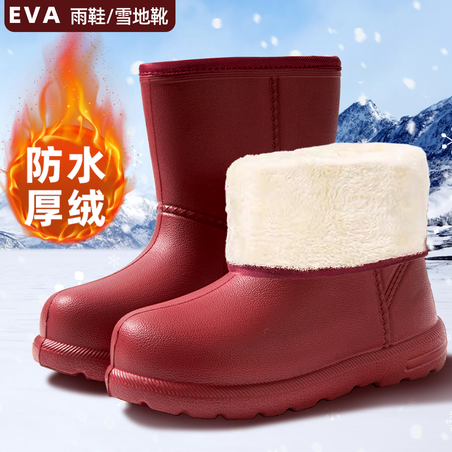 加绒雨鞋雪地靴女款冬季2025新款成人女士高颜值时尚防水防滑水鞋