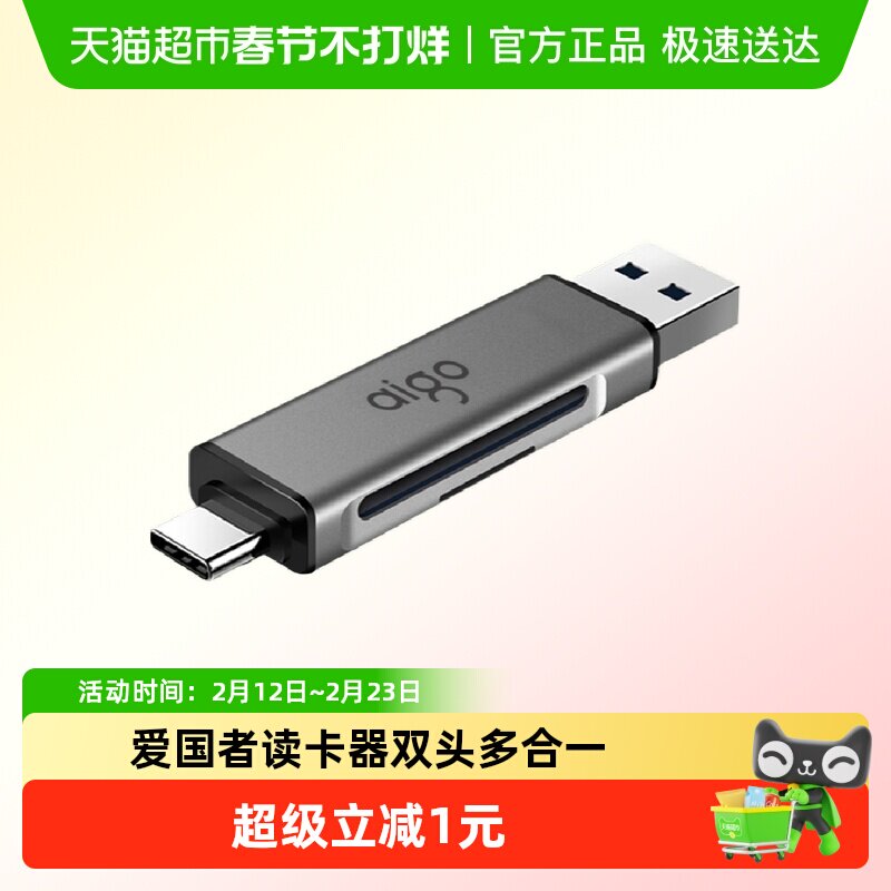 爱国者读卡器USB3.0双头sd卡相机tf多合一Type-C连接手机电脑