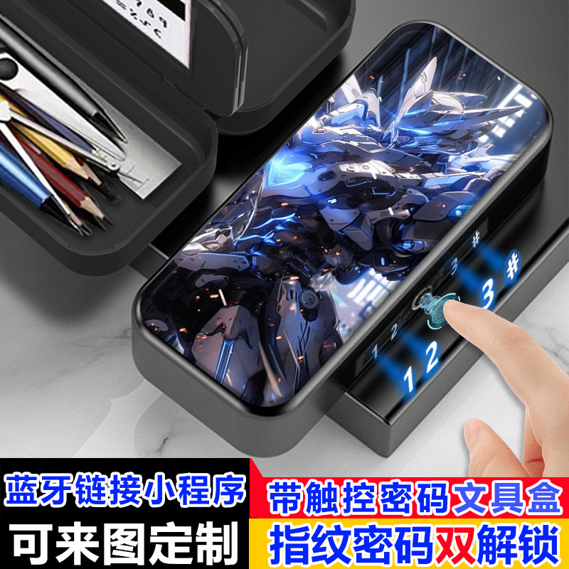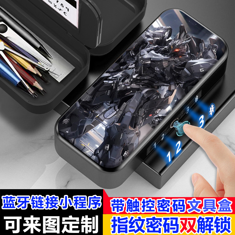 高达机甲战士指纹带密码文具盒豪华中小学生男生锁炫酷铅笔盒定制