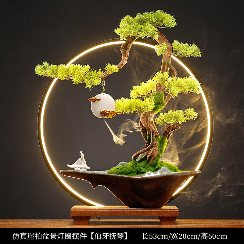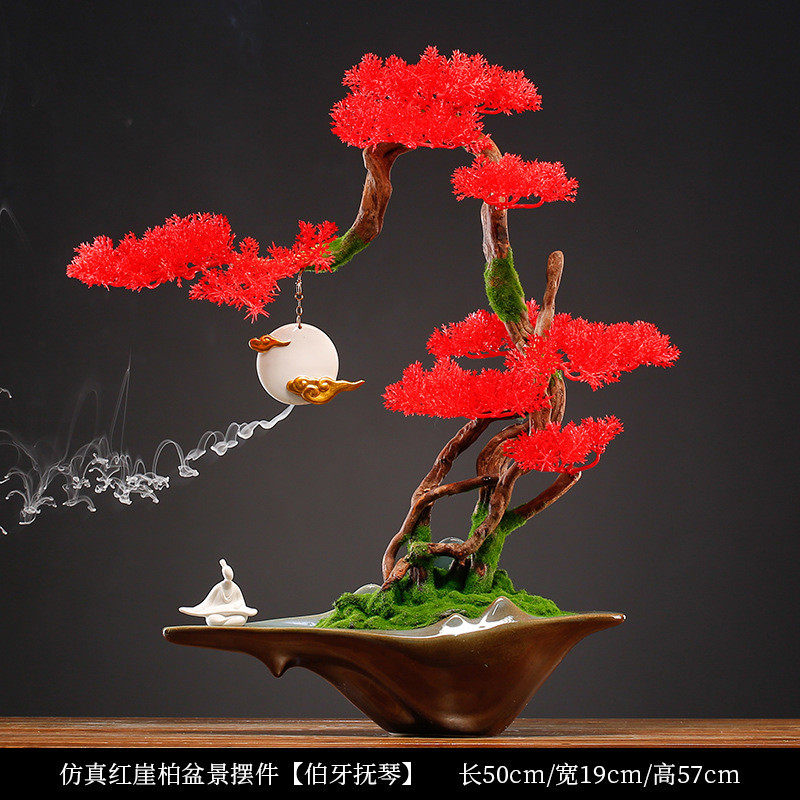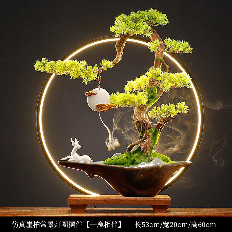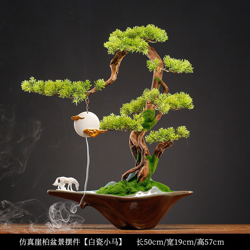 新中式仿真迎客松崖柏摆件电视柜家居绿植盆栽桌面办公室摆设装饰