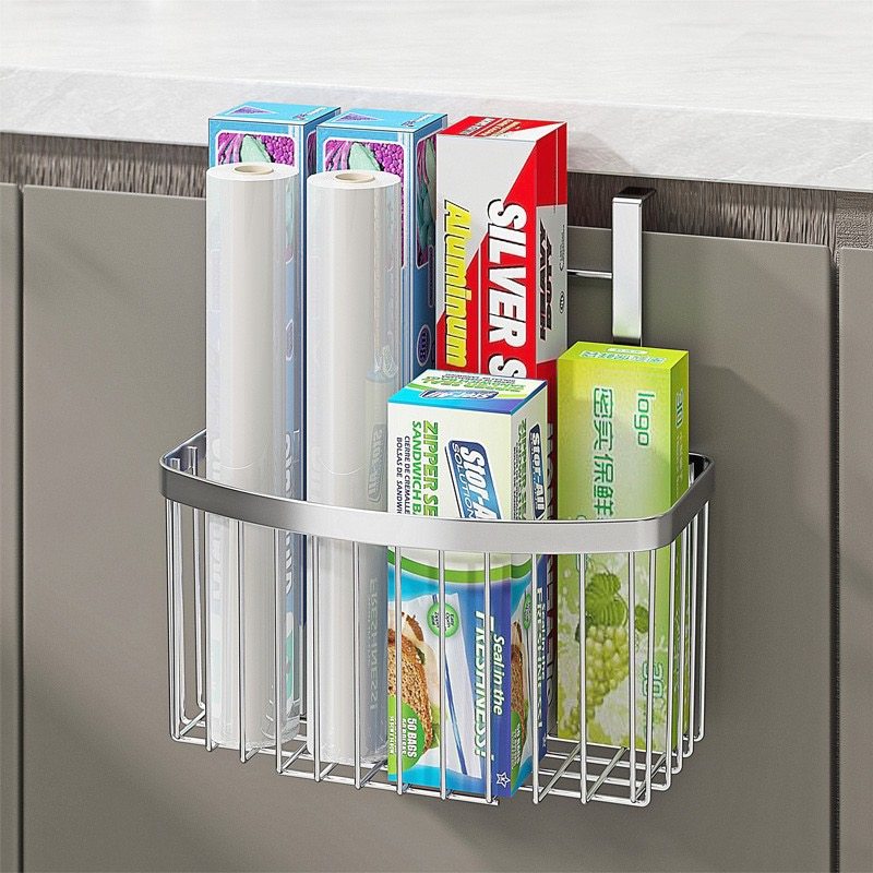 厨房吊柜门下置物架悬挂吊篮挂架分层储物架挂纸巾保鲜膜收纳架子