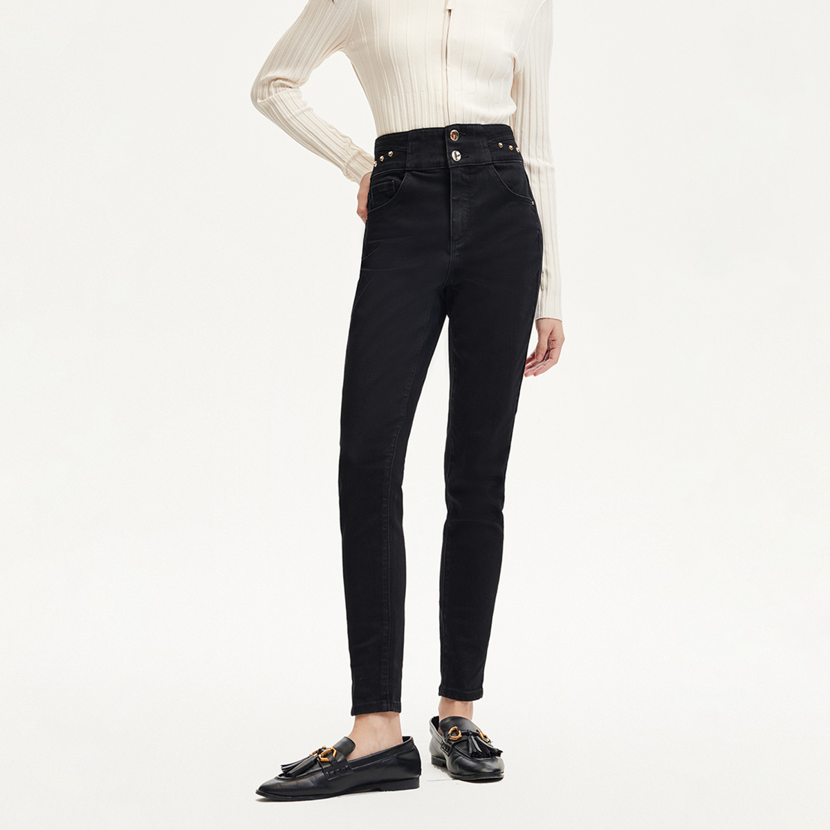 高腰九分裤设计,显高显瘦,不挑身材