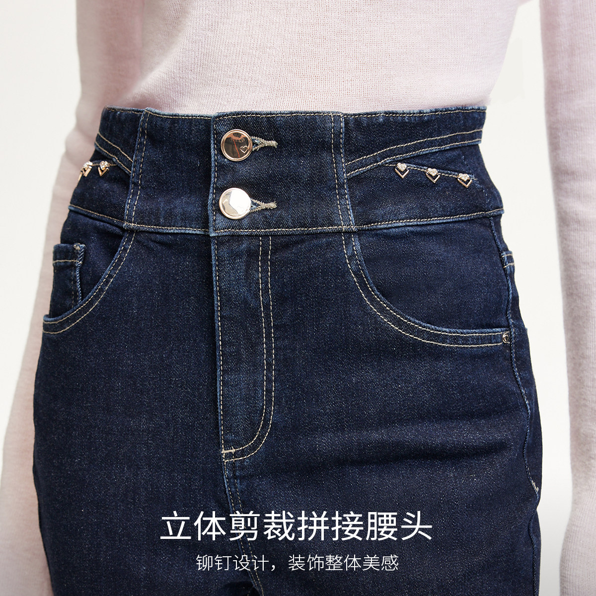 Vero Moda牛仔裤秋冬爱心水钻装饰明线九分小脚裤324349024