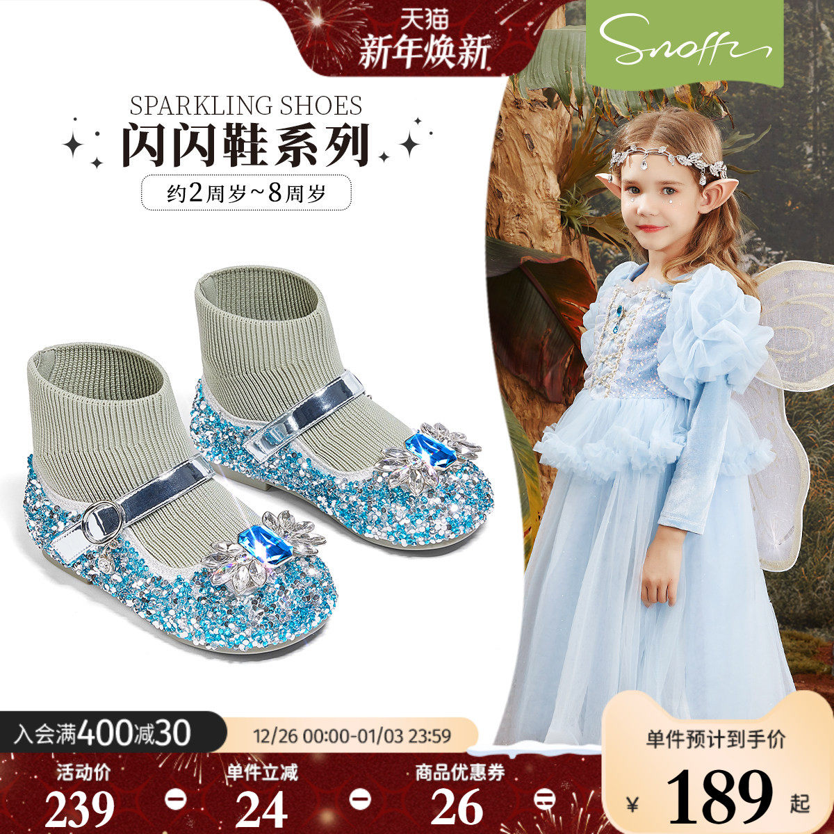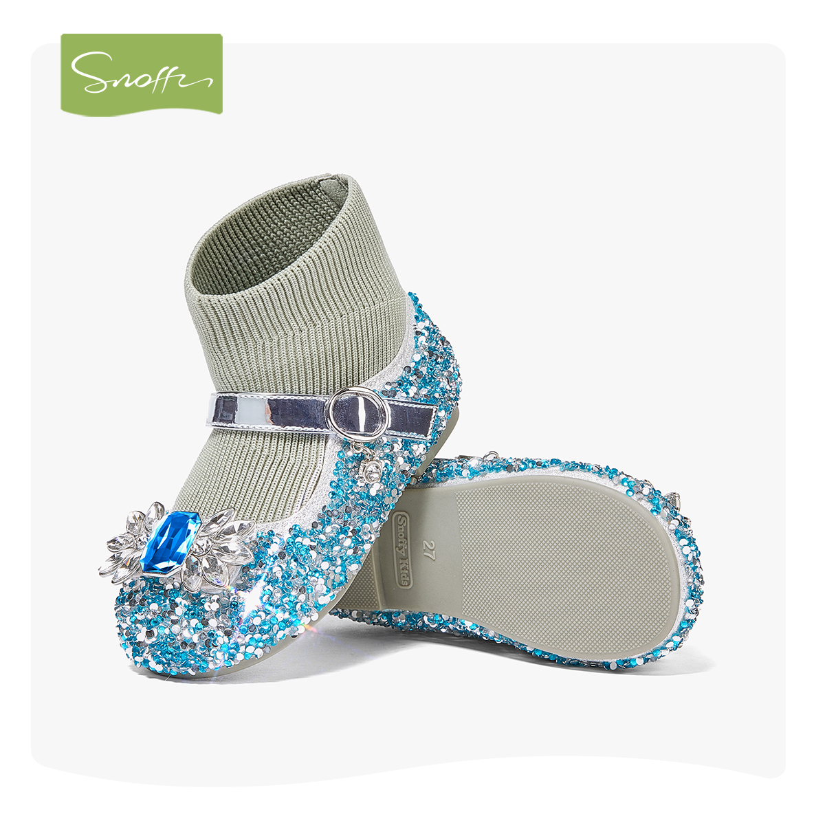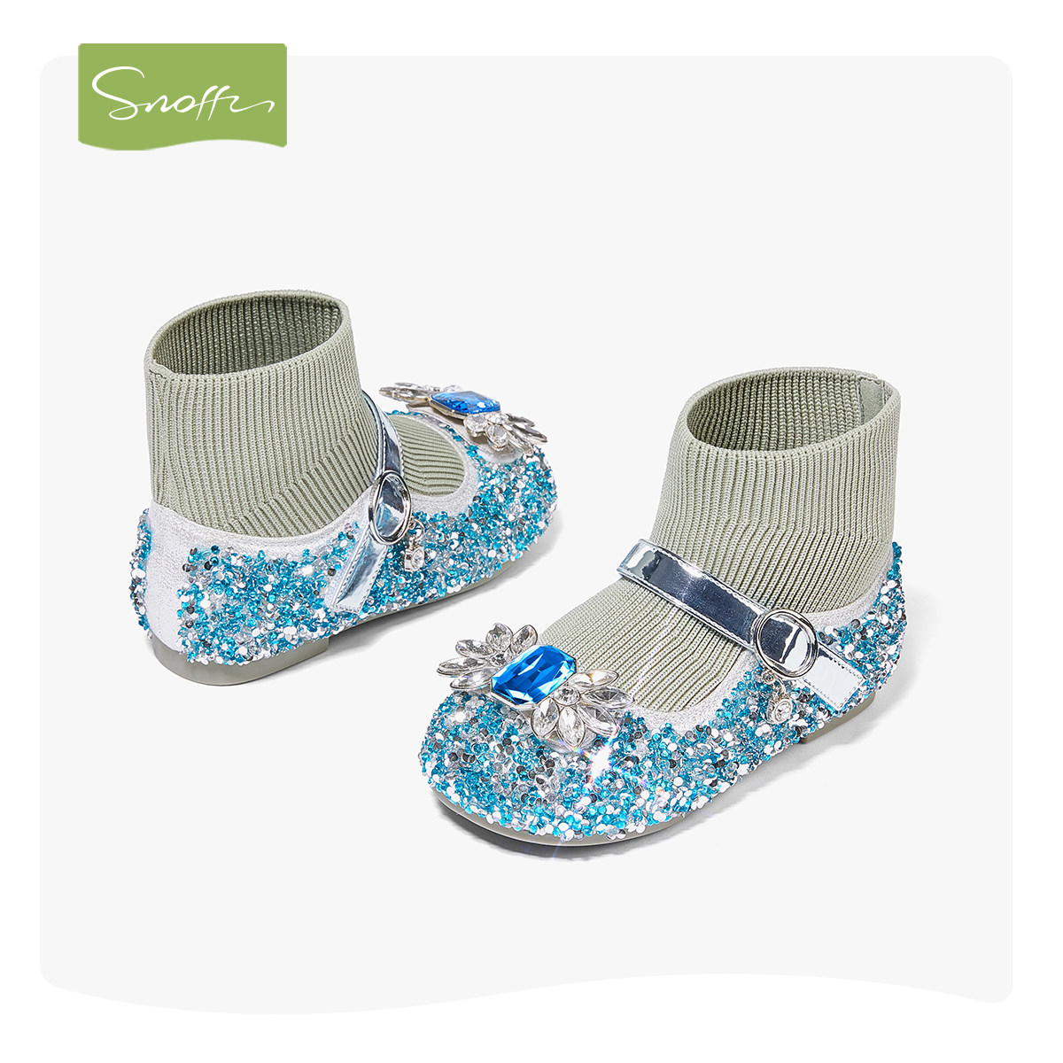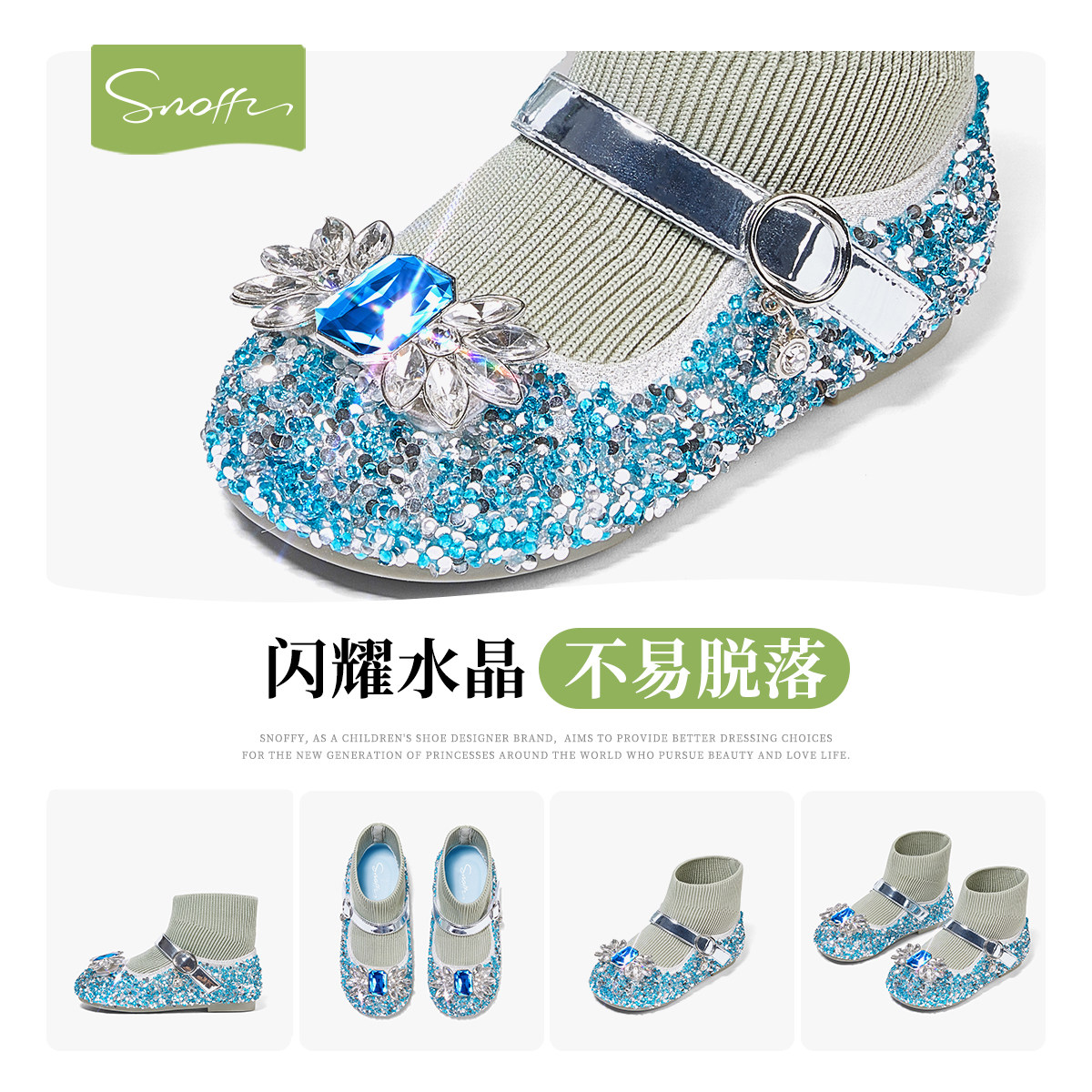 斯纳菲女童袜靴爱莎公主水晶靴2025秋冬软底儿童单靴闪亮时尚靴子