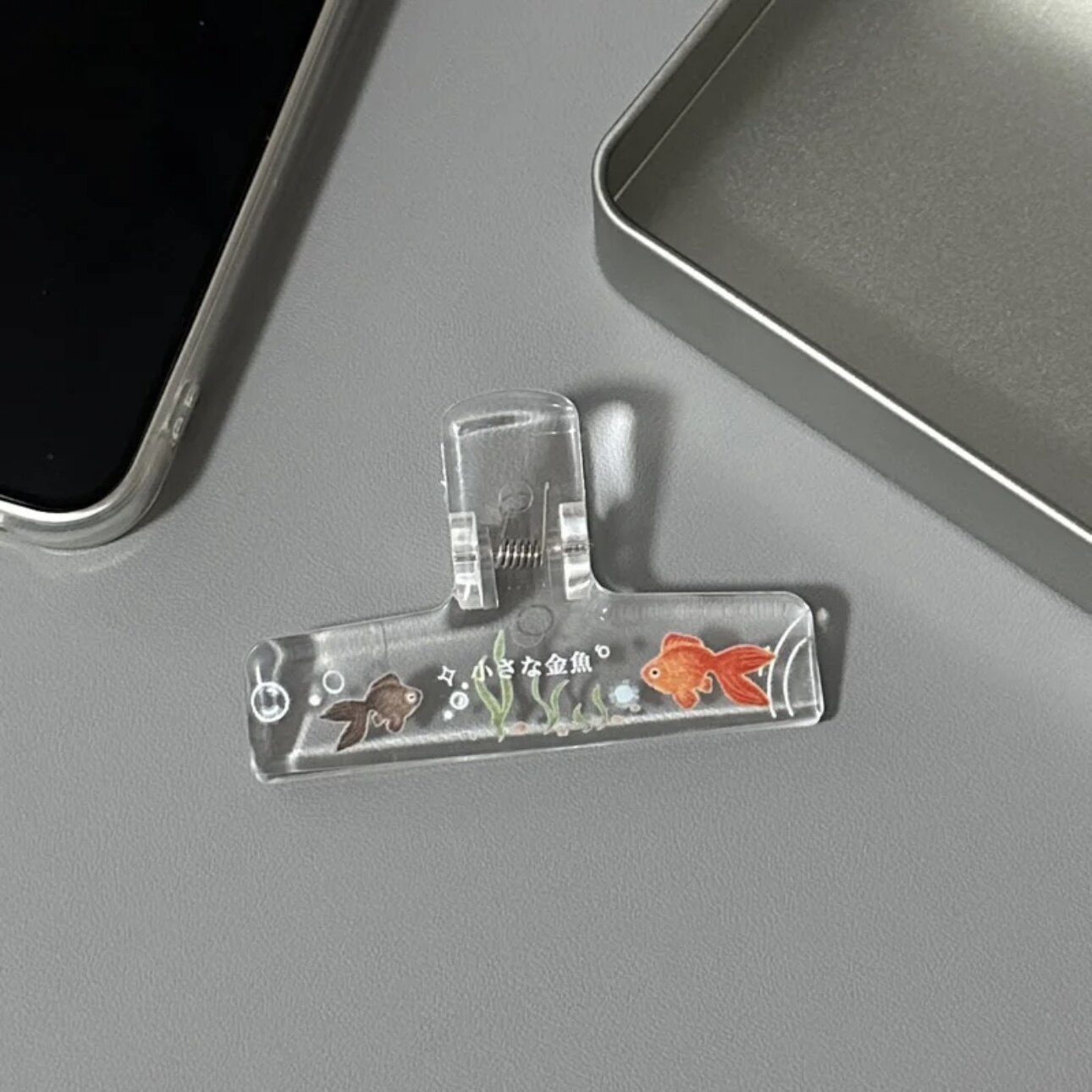 夏日金鱼长尾夹透明亚克力学生书本夹手账钢琴谱固定器文件票据子