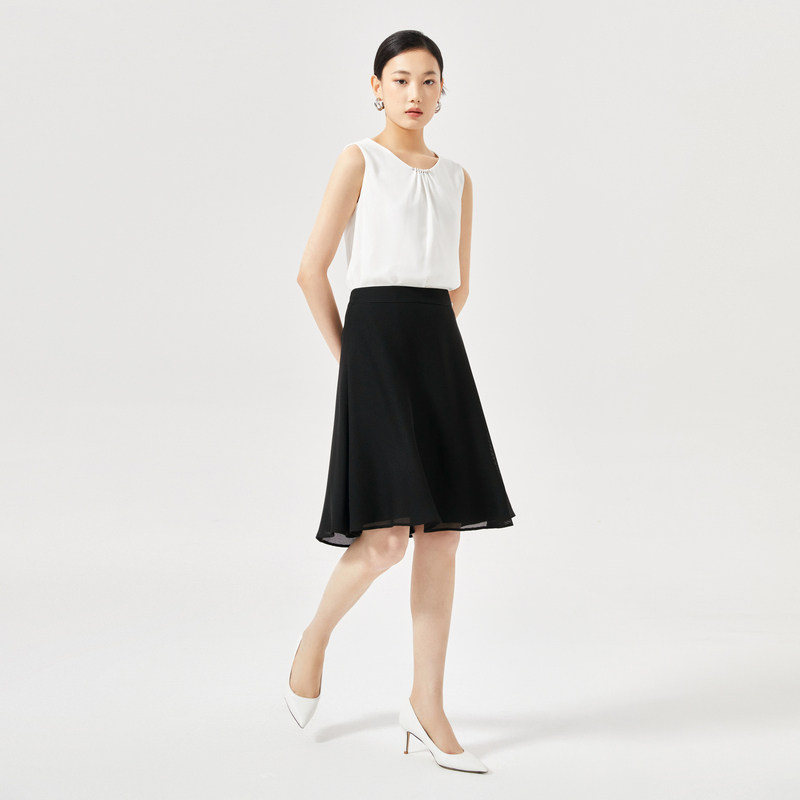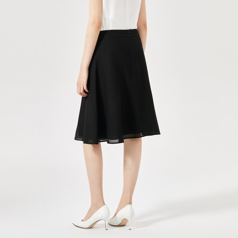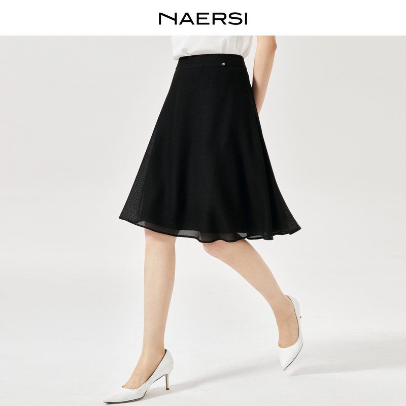 NAERSI/娜尔思时尚气质黑色半身裙女2025夏装通勤简约时尚A字裙