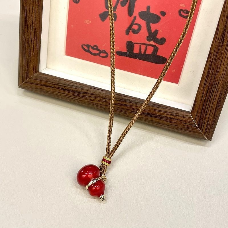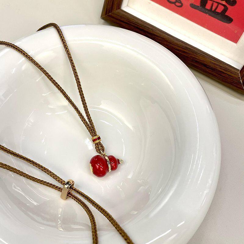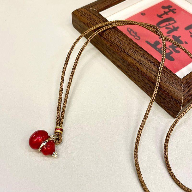 福禄安康红色中式珐琅女款葫芦新款高级编绳长款项链坠小众毛衣