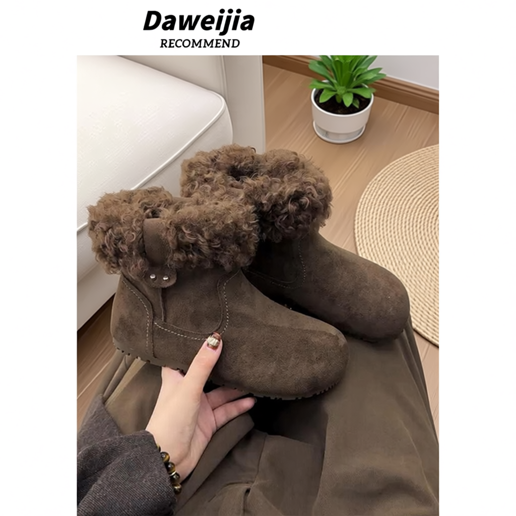 低帮厚底雪地靴女2025新款冬季懒人一脚蹬毛毛棉鞋加绒加厚女鞋子