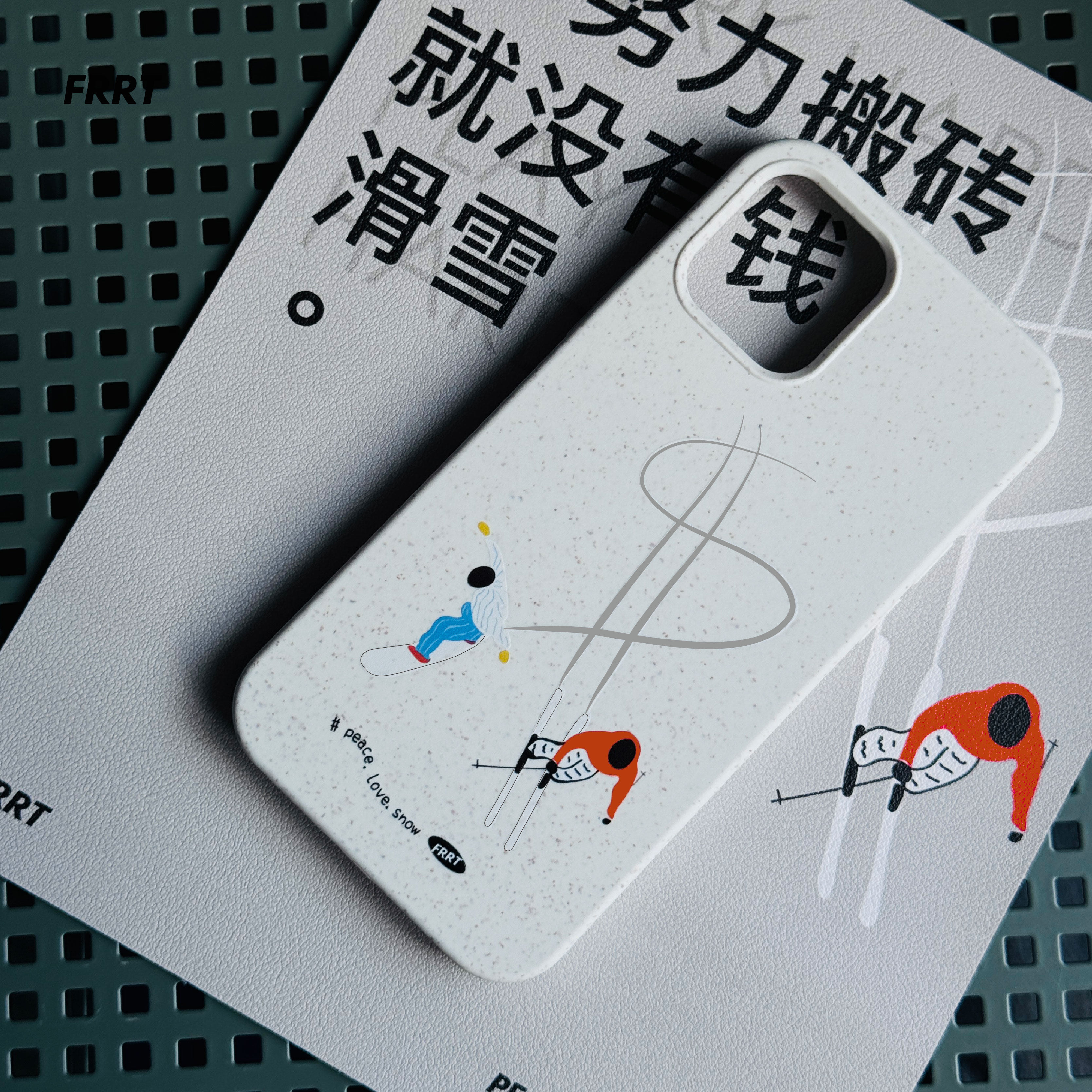 FRRT原创设计 不努力搬砖就没有钱滑雪 单双板生活方式适用于华为苹果iPhone1516promax菲林手机壳