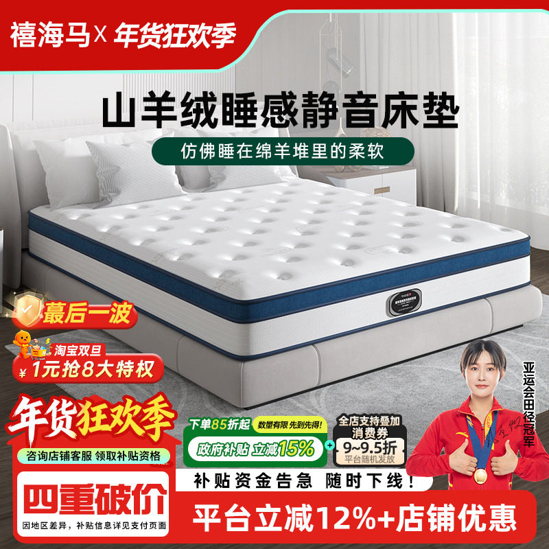 【大白垫Plus新品】喜临门城市爱情席梦思弹簧垫乳胶睡感厚床垫子