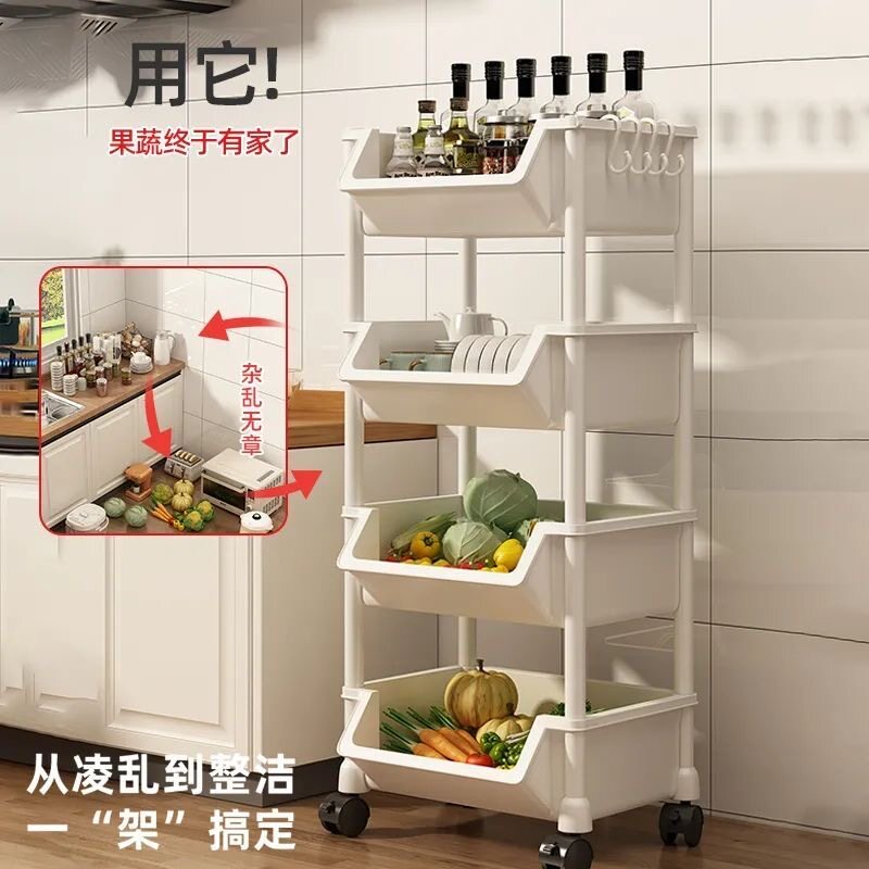 厨房放菜零食置物架落地多层小推车收纳架多功能果蔬菜篮子储物架
