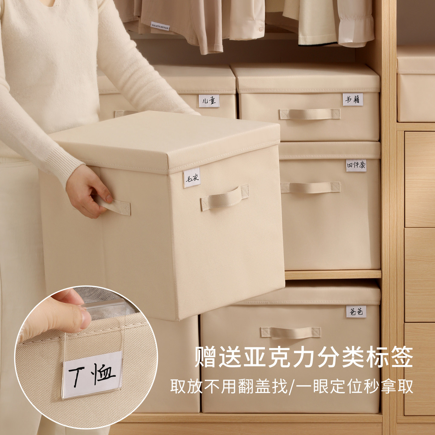 天山棉麻收纳筐衣柜收纳整理分层神器PP板可水洗衣服储物盒收纳箱