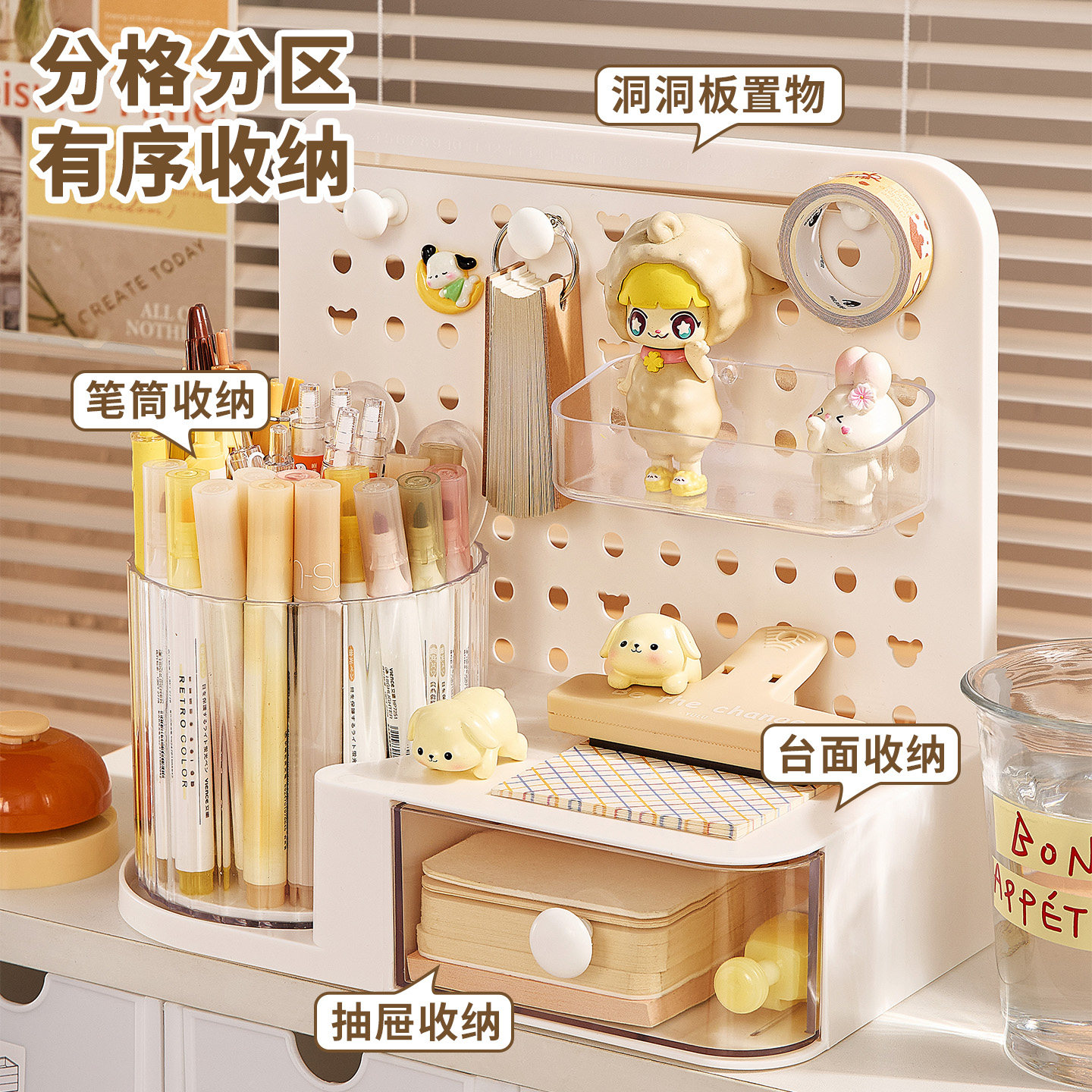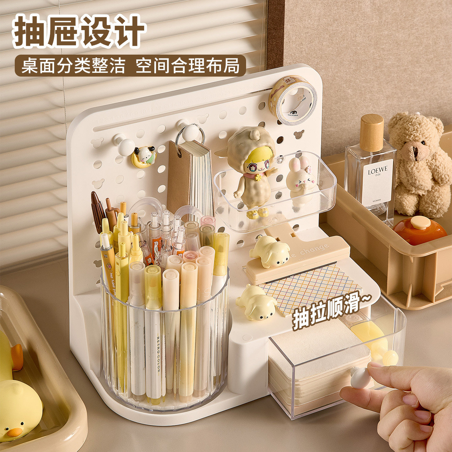 三年二班 旋转笔筒桌面收纳盒学生轻奢高级感大容量超大办公室高颜值儿童男孩女孩带抽屉多功能文具置物架